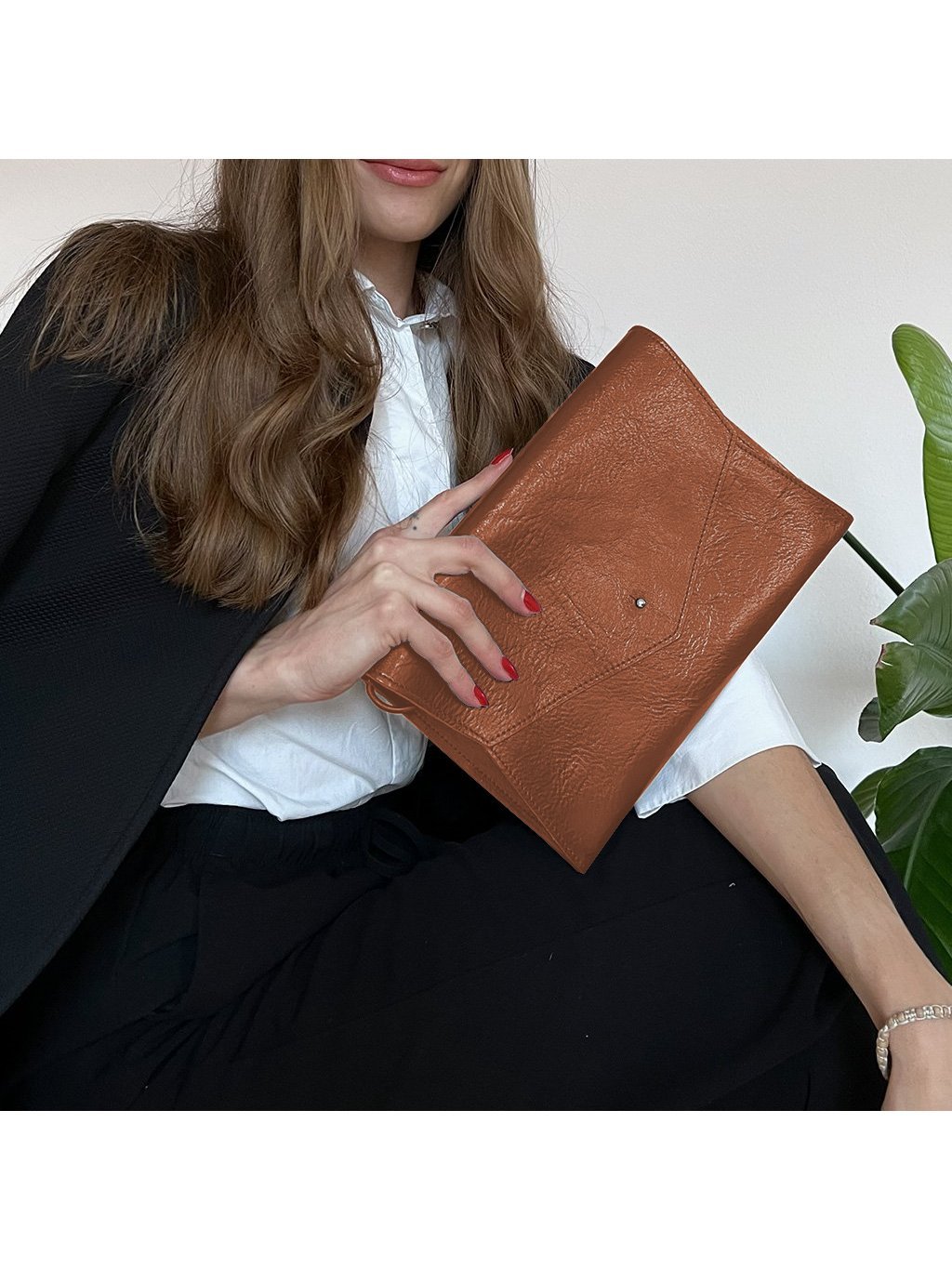 Tahle elegantní kabelka vychází z oblíbeného psaníčka, ale nabízí více prostoru díky chytrému rozevíracímu střihu. Pohodlně do ní uložíte telefon, klíče, peněženku i další nezbytnosti a oceníte i praktickou vnitřní kapsičku. Sedlářský knoflík zajišťuje jednoduché, ale spolehlivé zapínání. Nastavitelný kožený popruh s rozšířením si přizpůsobíte přesně podle sebe, případně ho můžete zkrátit nebo úplně schovat. Kabelku tak snadno proměníte v elegantní psaníčko do ruky i stylový doplněk na předloktí.