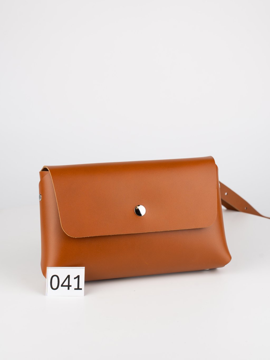 041 Bella kabelka - koňaková pirex (Zachraň kůži = 1 ks) Dámská kožená kabelka. Vystavený kus, 2. jakost. Doplňkové ilustrační fotky a video.