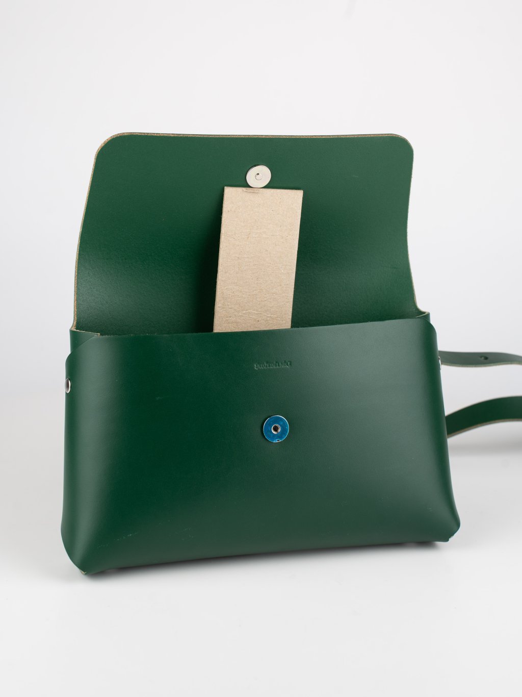 055 Bella kabelka - zelená pirex (Zachraň kůži = 1 ks) Dámská kožená kabelka. Vystavený kus, 2. jakost. Doplňkové ilustrační fotky a video.