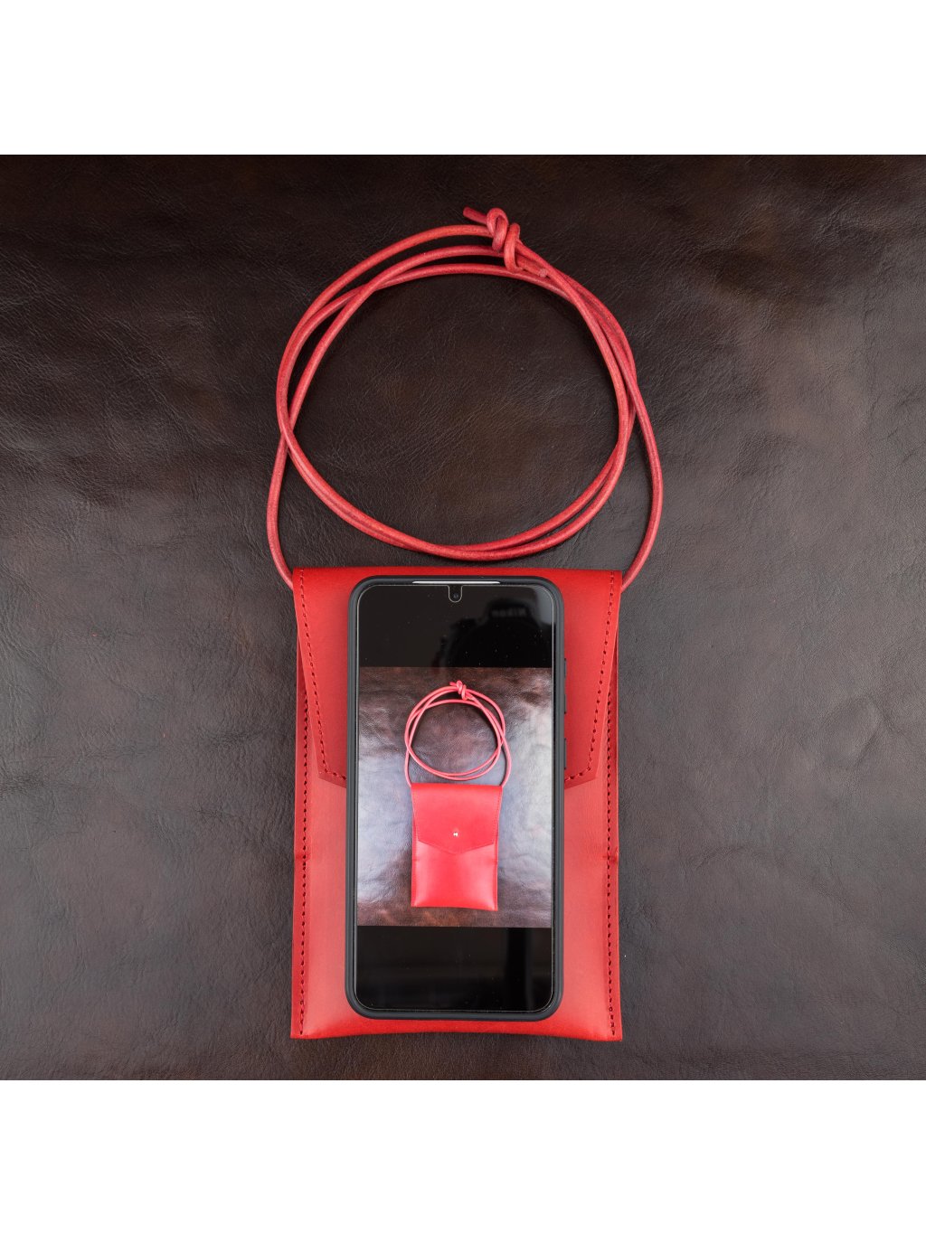 Parametry: hovězí useň o síle cca 1,5 mm, rozměry pouzdra cca 12,5 x 18 cm. Dovnitř se vejde i velký telefon Samsung S24 Plus v silikonovém pouzdře, takže se tam vejde prakticky každý mobil. Délka šňůrky vč. uzlíků 140 cm (lze libovolně regulovat).