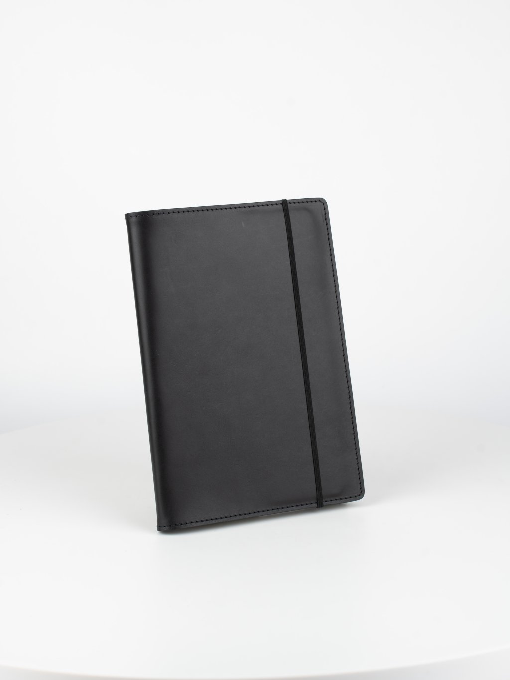 Decentní kožený obal na zápisník z lícové hovězí usně v kapesní velikosti A5.