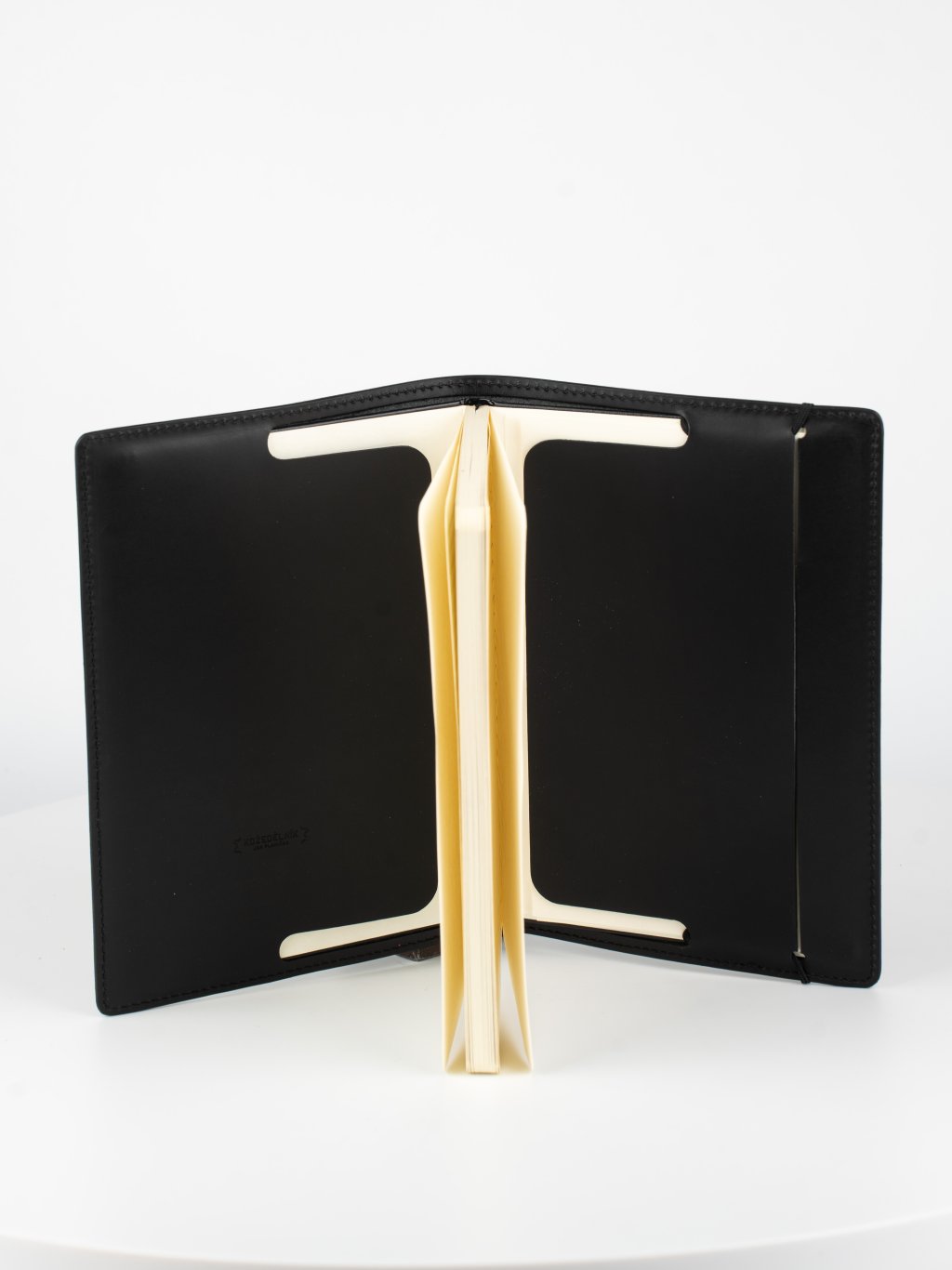 Nejoblíbenější formát pro běžné nošení, do tašky i batohu, kam se vejdou všechny Vaše poznámky a projekty. Stejně jako u luxusnější varianty z kůže Buttero i u tohoto obalu zůstávají stránky zápisníku protažené konstrukci vnitřních "uší" obalu při psaní dokonale rovné - nemáte prostě uprostřed stránky hrbol. Nechtěnému otevírání zabrání pruženka na zápisníku, přetažená přes obal.