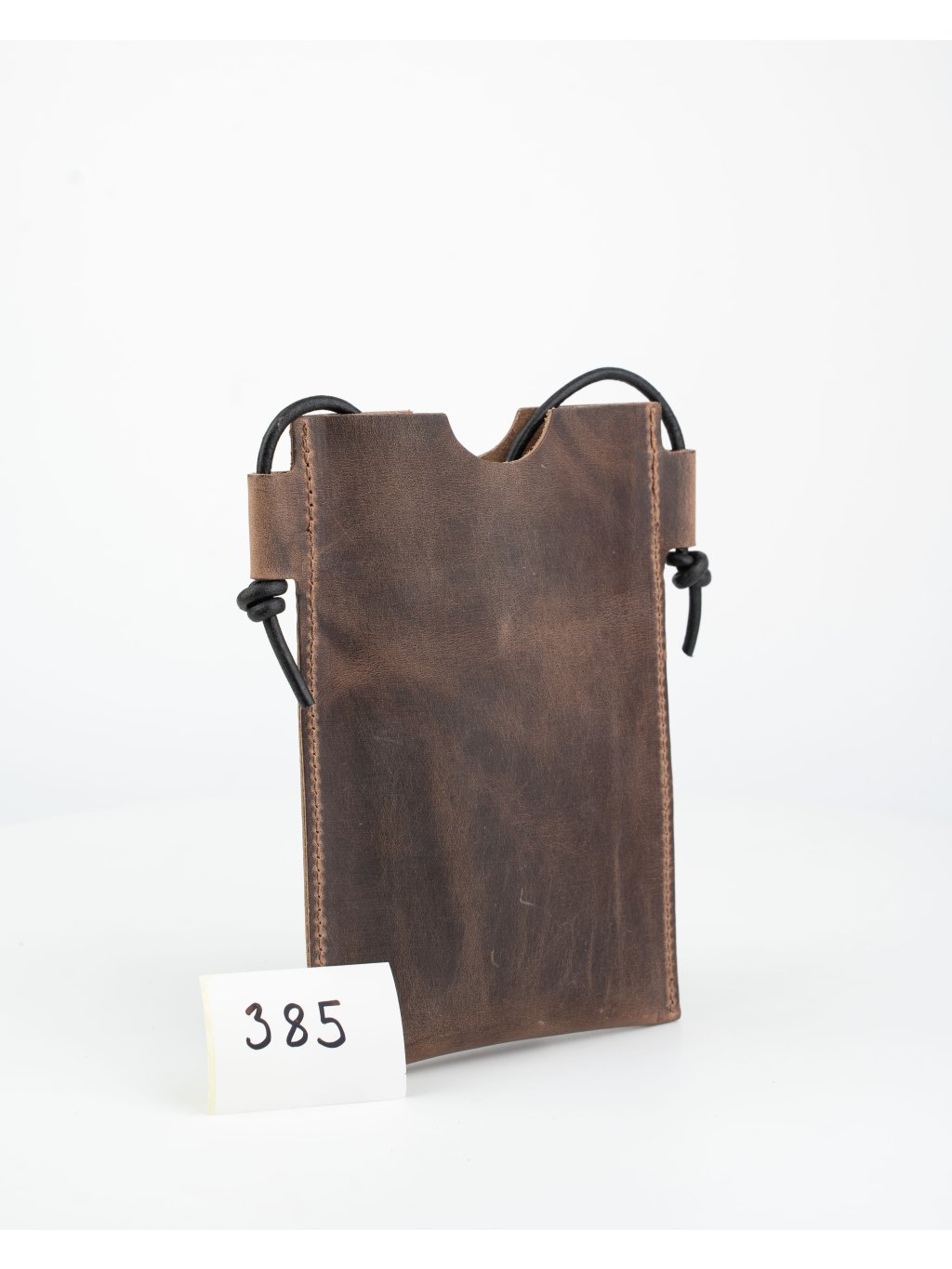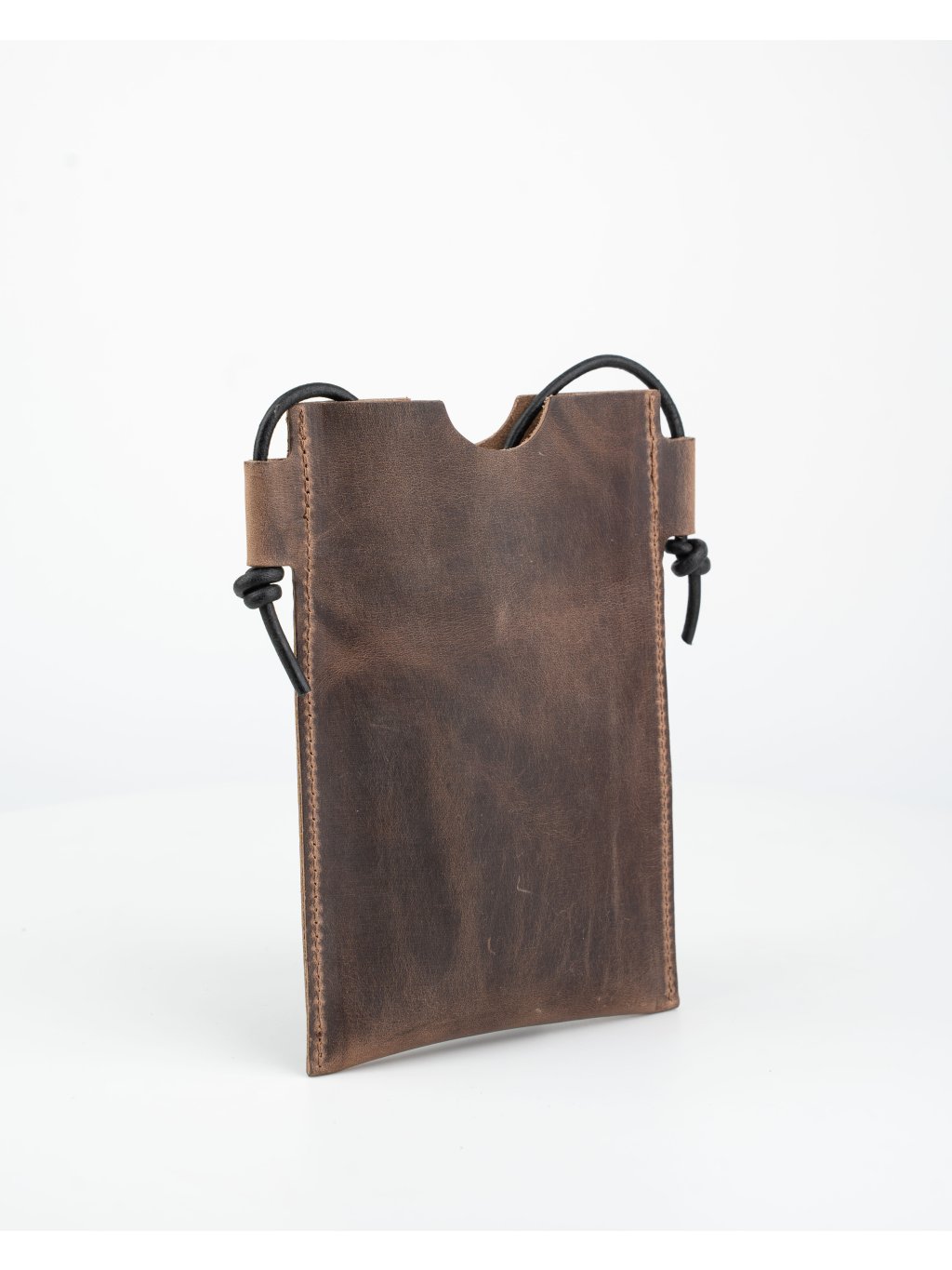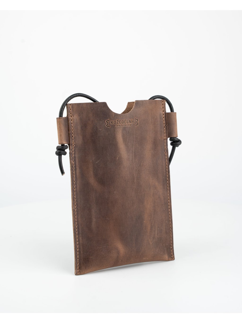 385 Laura pouzdro na telefon - pull-up hnědé (Zachraň kůži = 1 ks) Pevné kožené pouzdro na telefon. Vystavený kus, 2. jakost. Doplňkové ilustrační fotky a video.