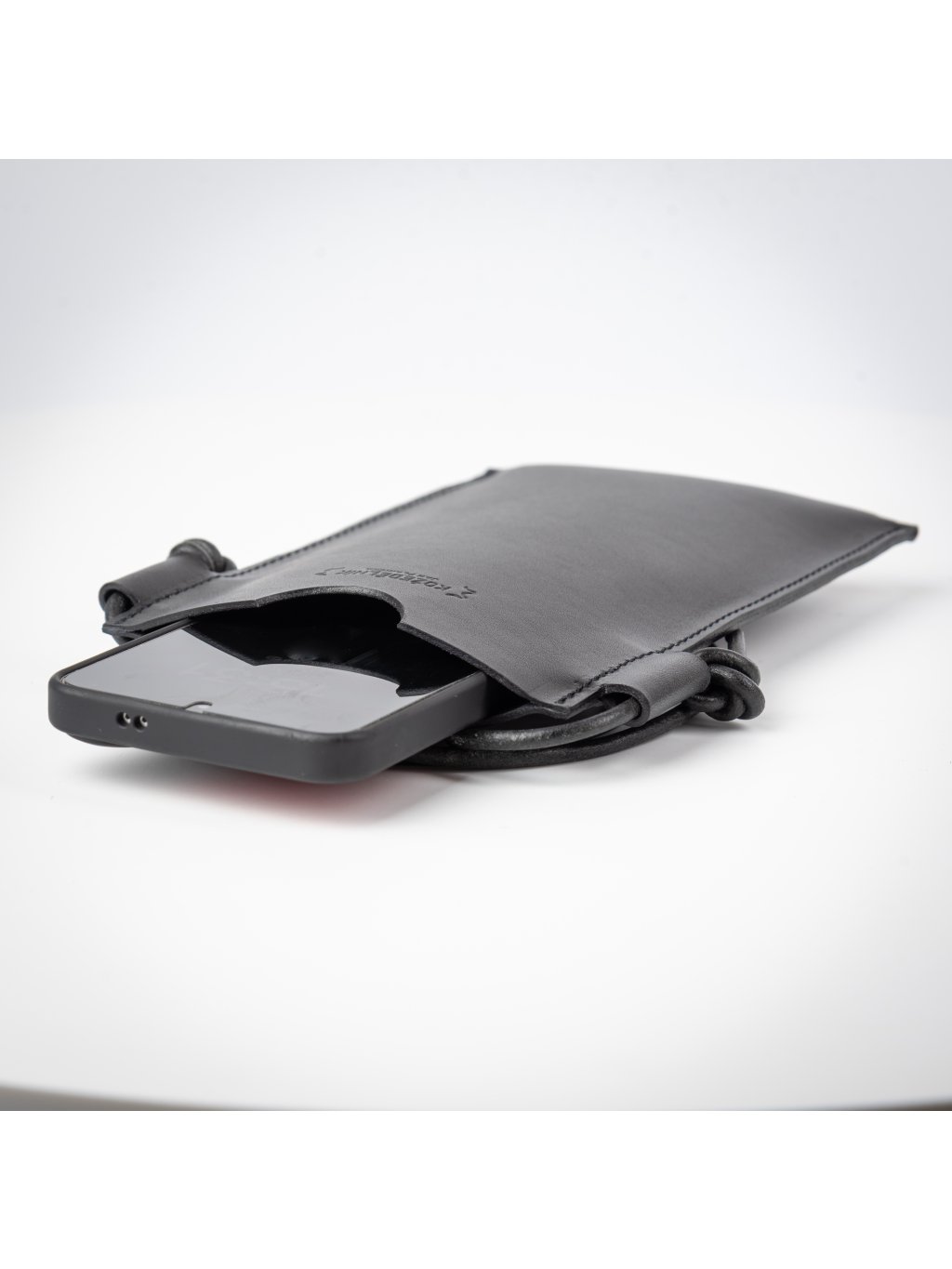 Elegantní a praktické pouzdro na telefon vyrobené z 2 mm silné hladké hovězí třísločiněné usně z Itálie. Useň má zabarvený a hladký rub, takže nepotřebuje podšívku, je odolná a nehrozí, že by poškrábala displej vašeho telefonu. Když ho potřebujete vytáhnout, jde to snadno a rychle. Popruh je dostatečně dlouhý, ale pokud chcete, můžete si ho jednoduše zkrátit pomocí uzlíků.