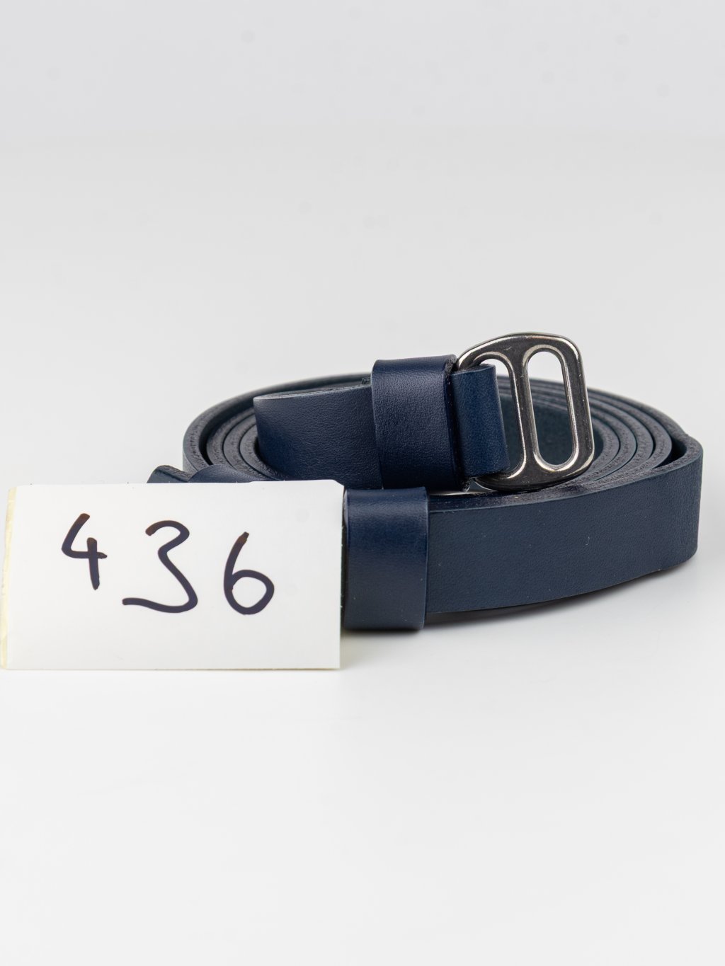 436 Emily opasek - modrý (Zachraň kůži = 1 ks) Dámský kožený opasek k šatům. Vystavený kus, 2. jakost. Doplňkové ilustrační fotky a videa.