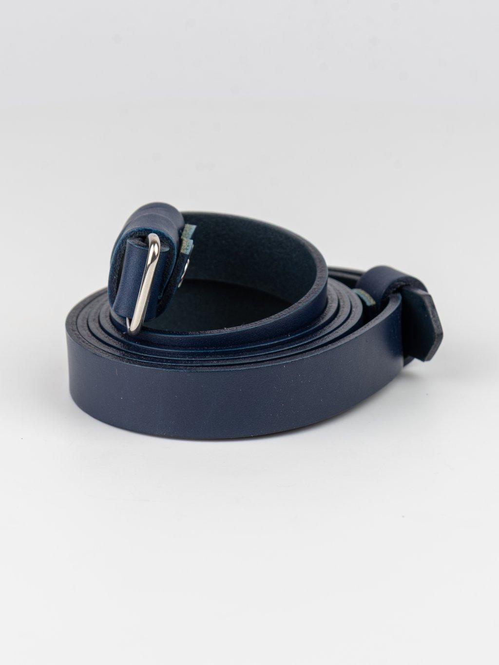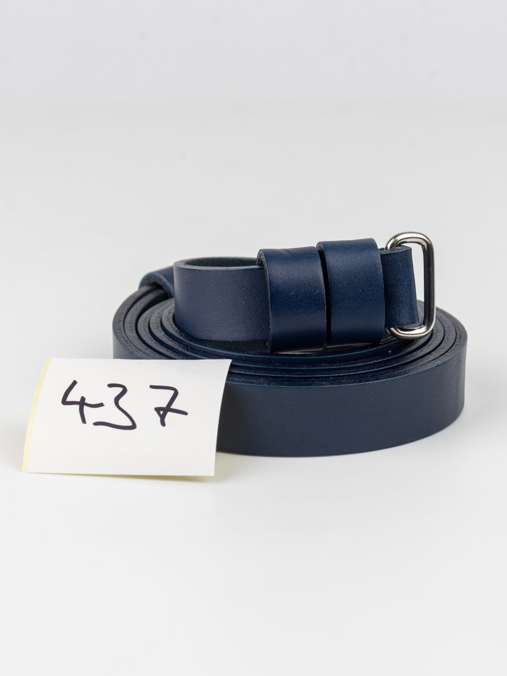 437 Emily opasek - modrý (Zachraň kůži = 1 ks) Dámský kožený opasek k šatům. Vystavený kus, 2. jakost. Doplňkové ilustrační fotky a videa.