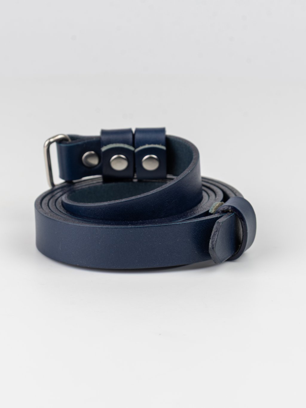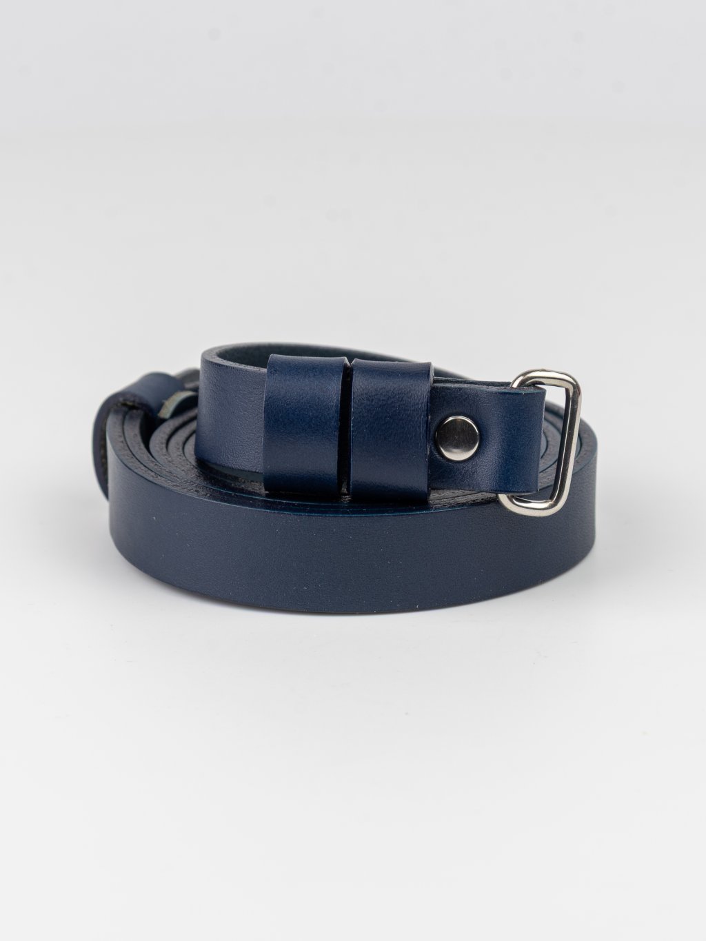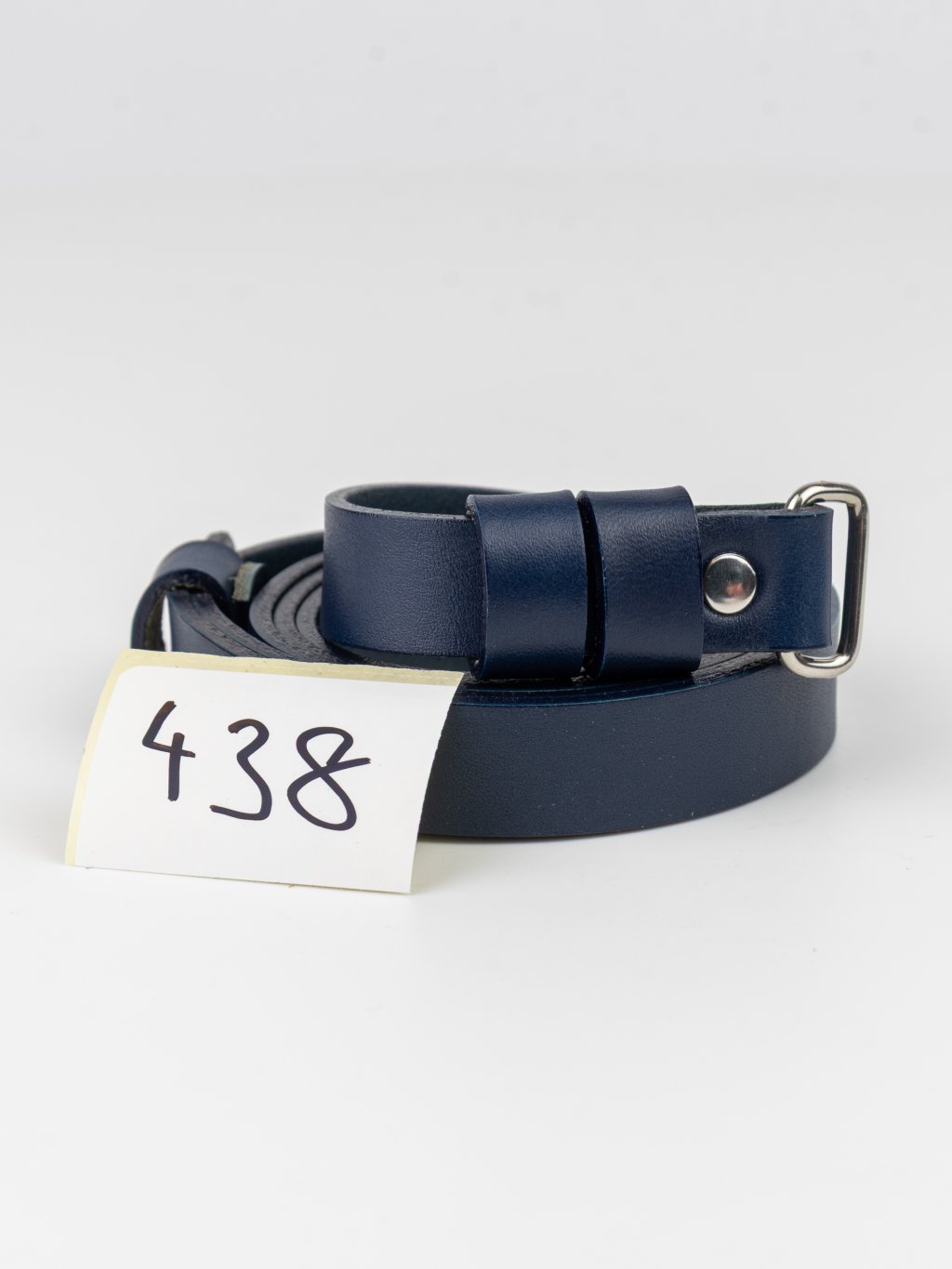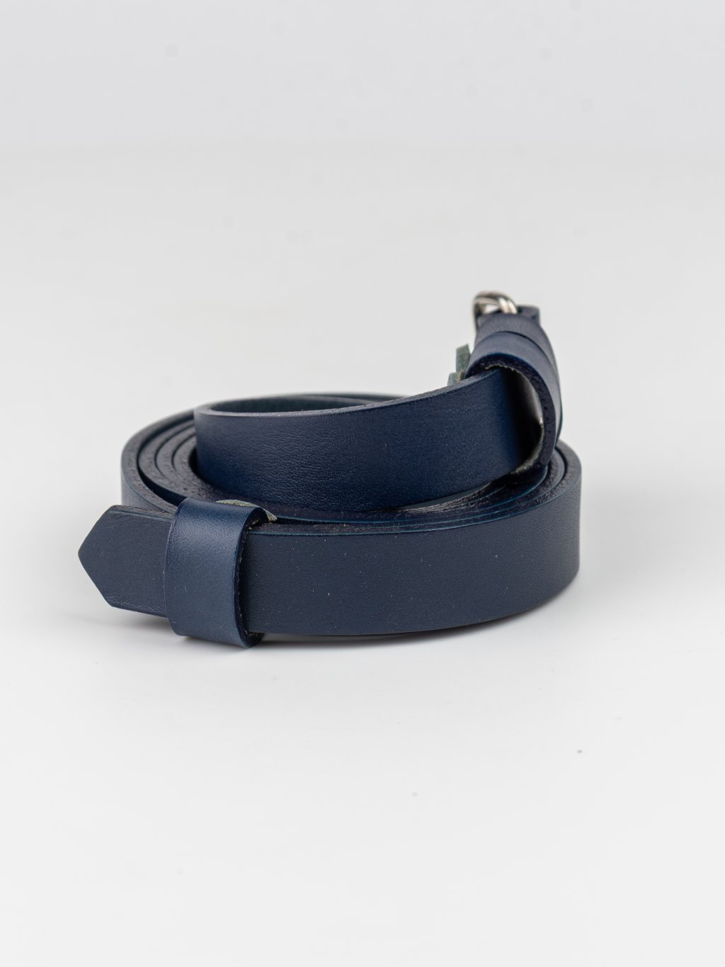 438 Emily opasek - modrý (Zachraň kůži = 1 ks) Dámský kožený opasek k šatům. Vystavený kus, 2. jakost. Doplňkové ilustrační fotky a videa.