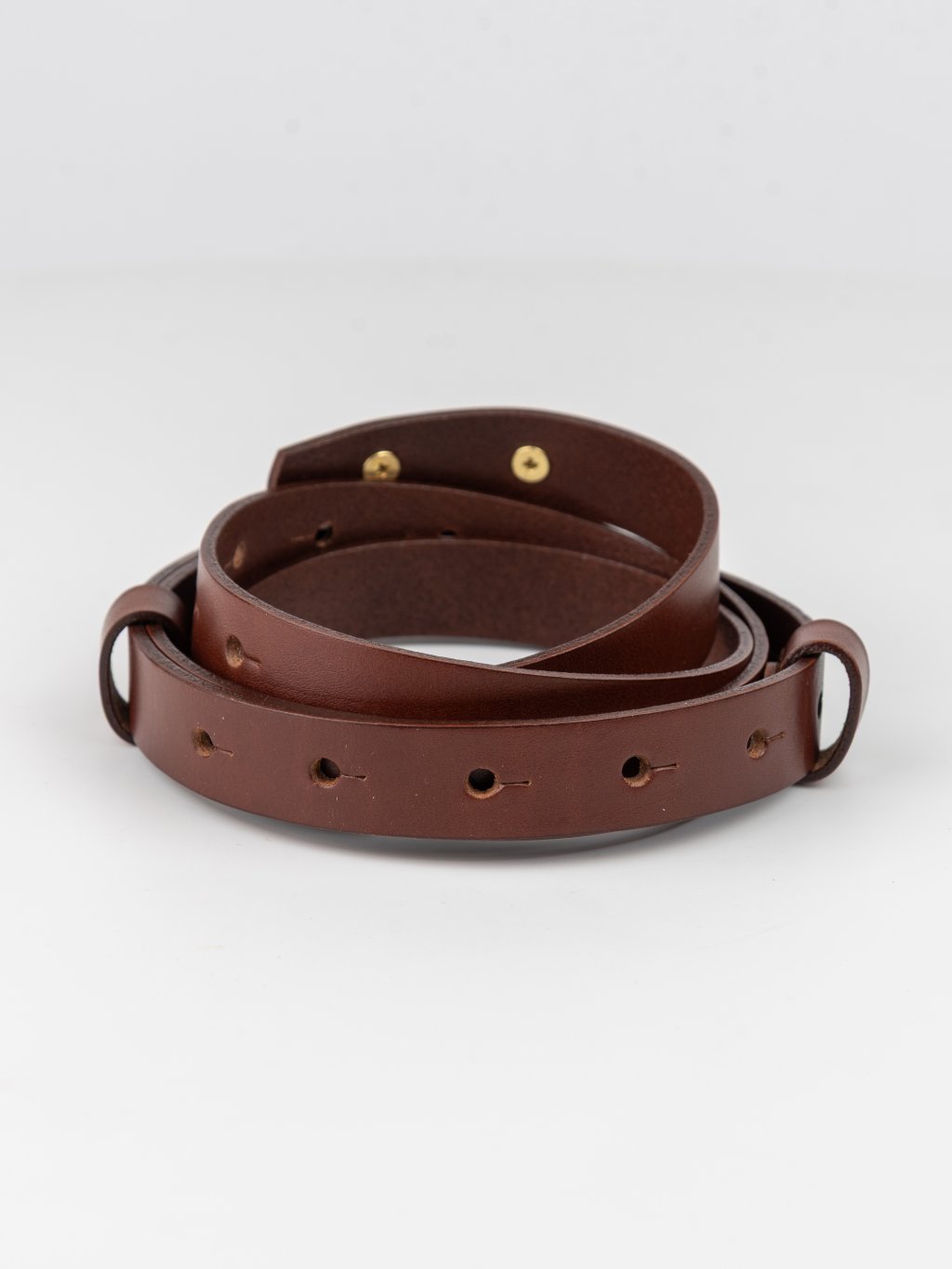 Úzký univerzální opasek z hovězí kůže s lesklou povrchovou úpravou. Perfektní k šatům nebo sukni.