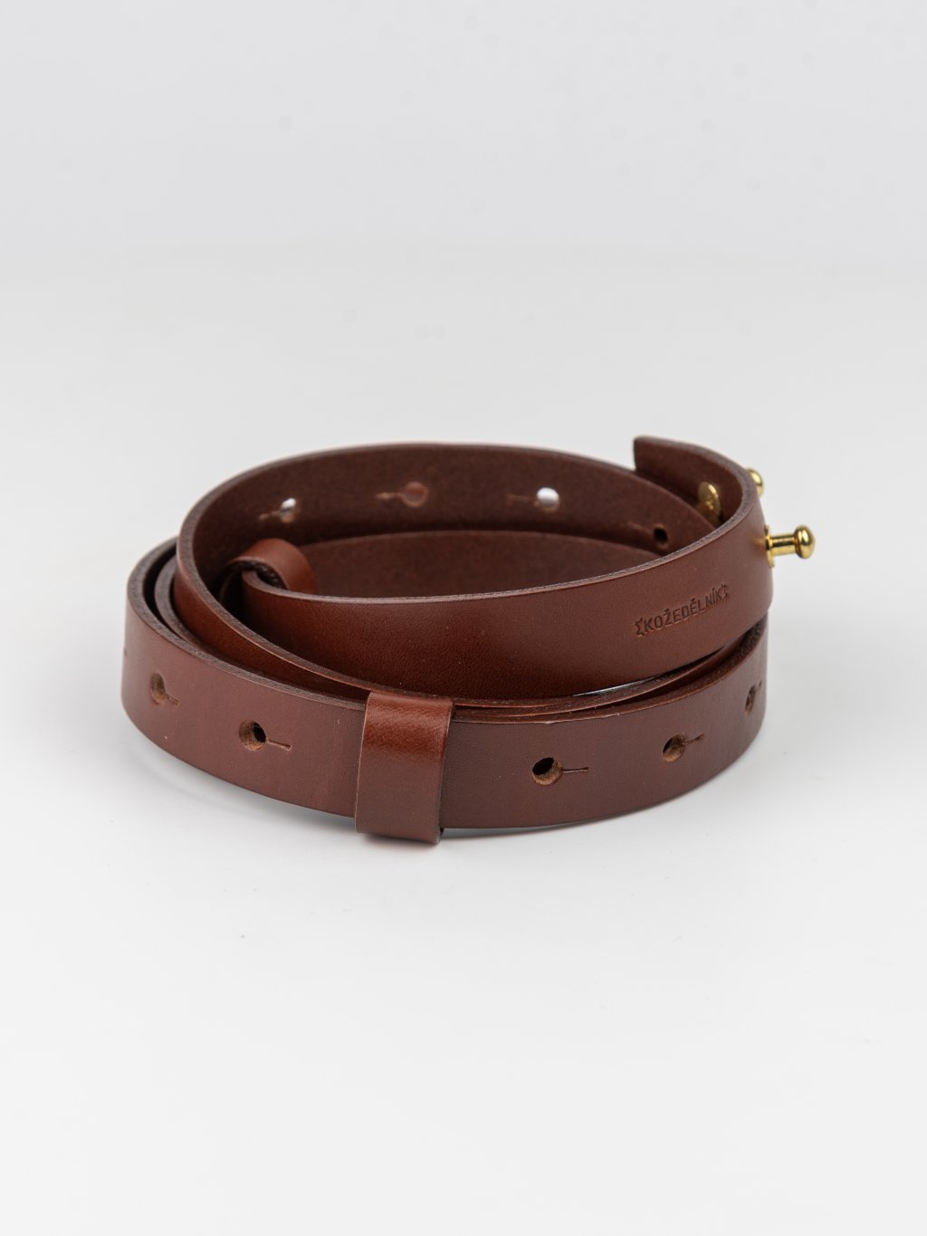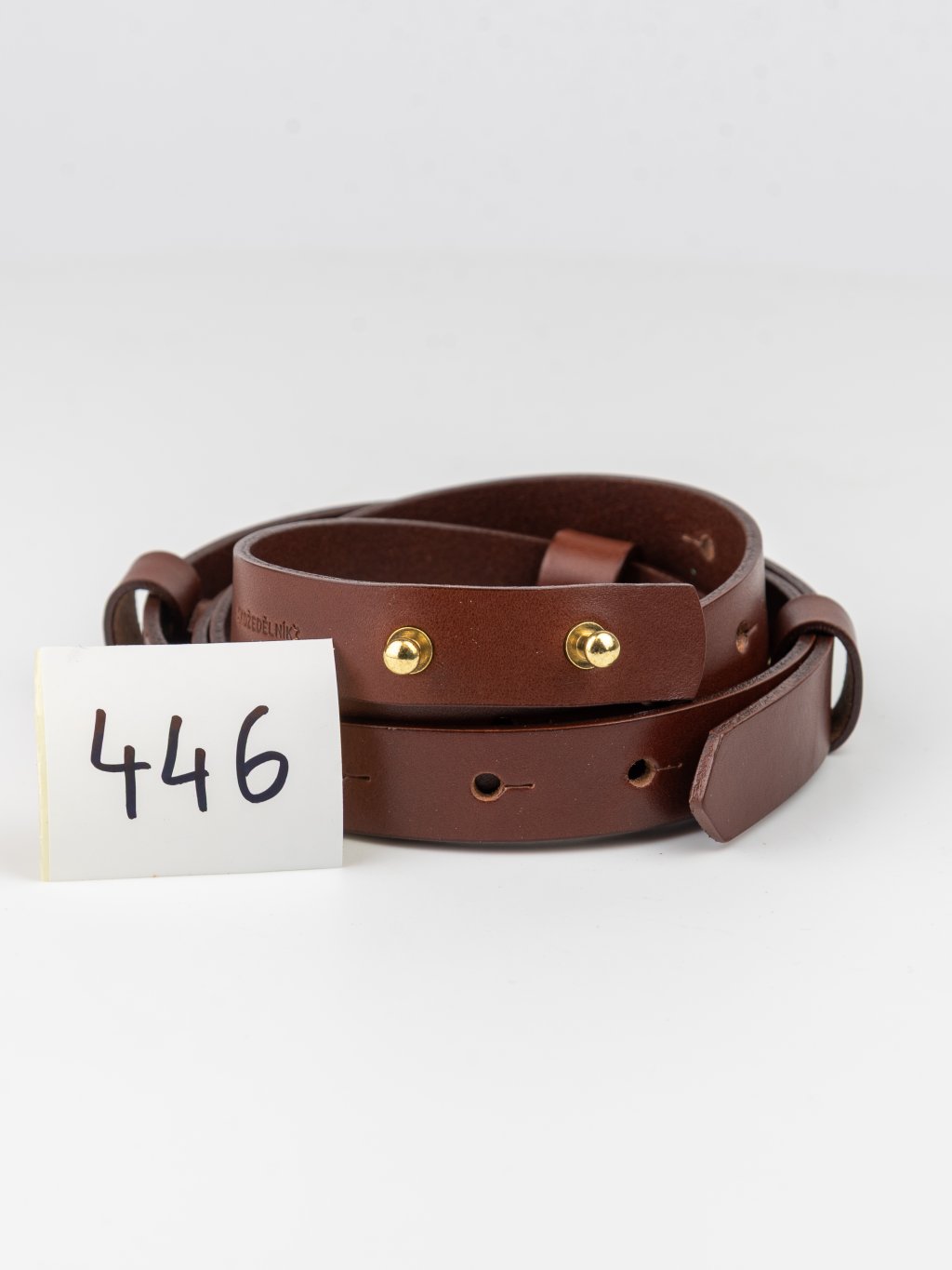 446 Dámský opasek univerzální - hnědý (Zachraň kůži = 1 ks) Kožený opasek k šatům nebo sukni. Vystavený kus, 2. jakost. Doplňkové ilustrační fotky a videa.