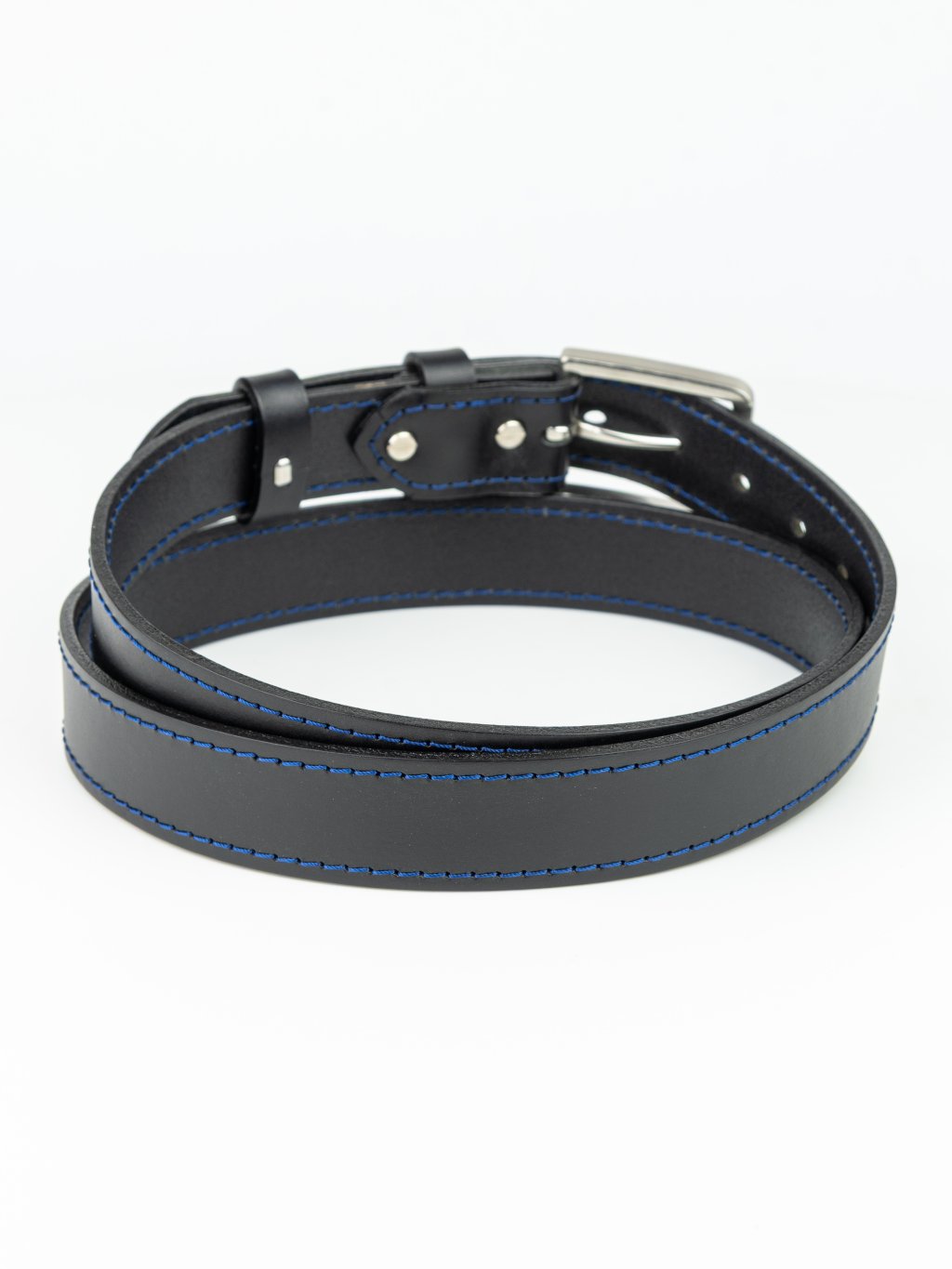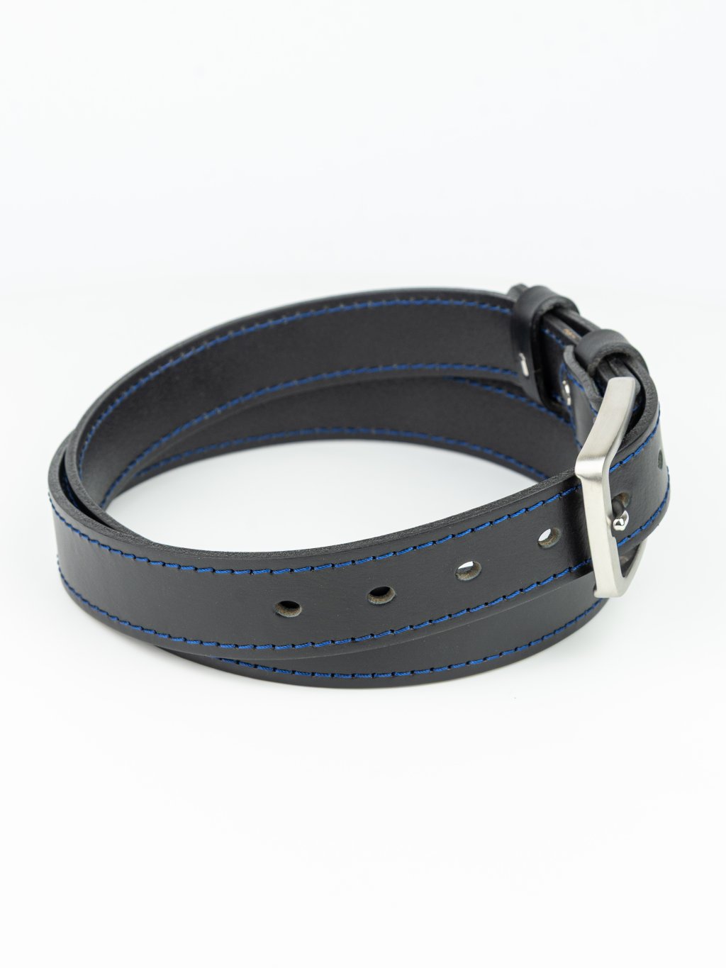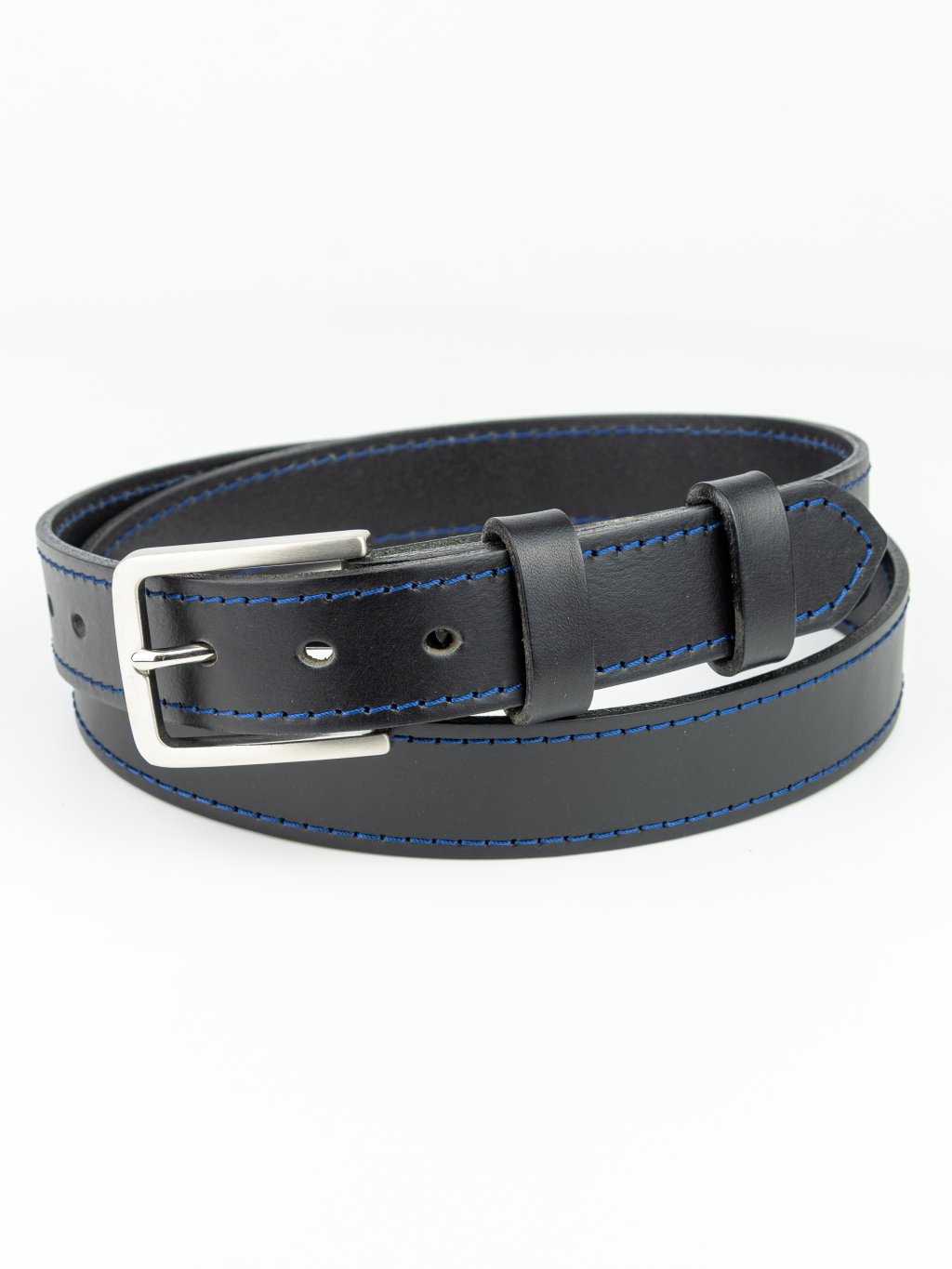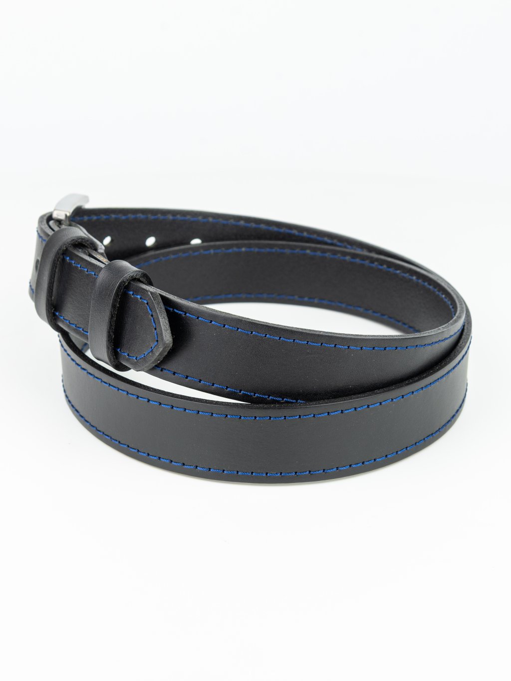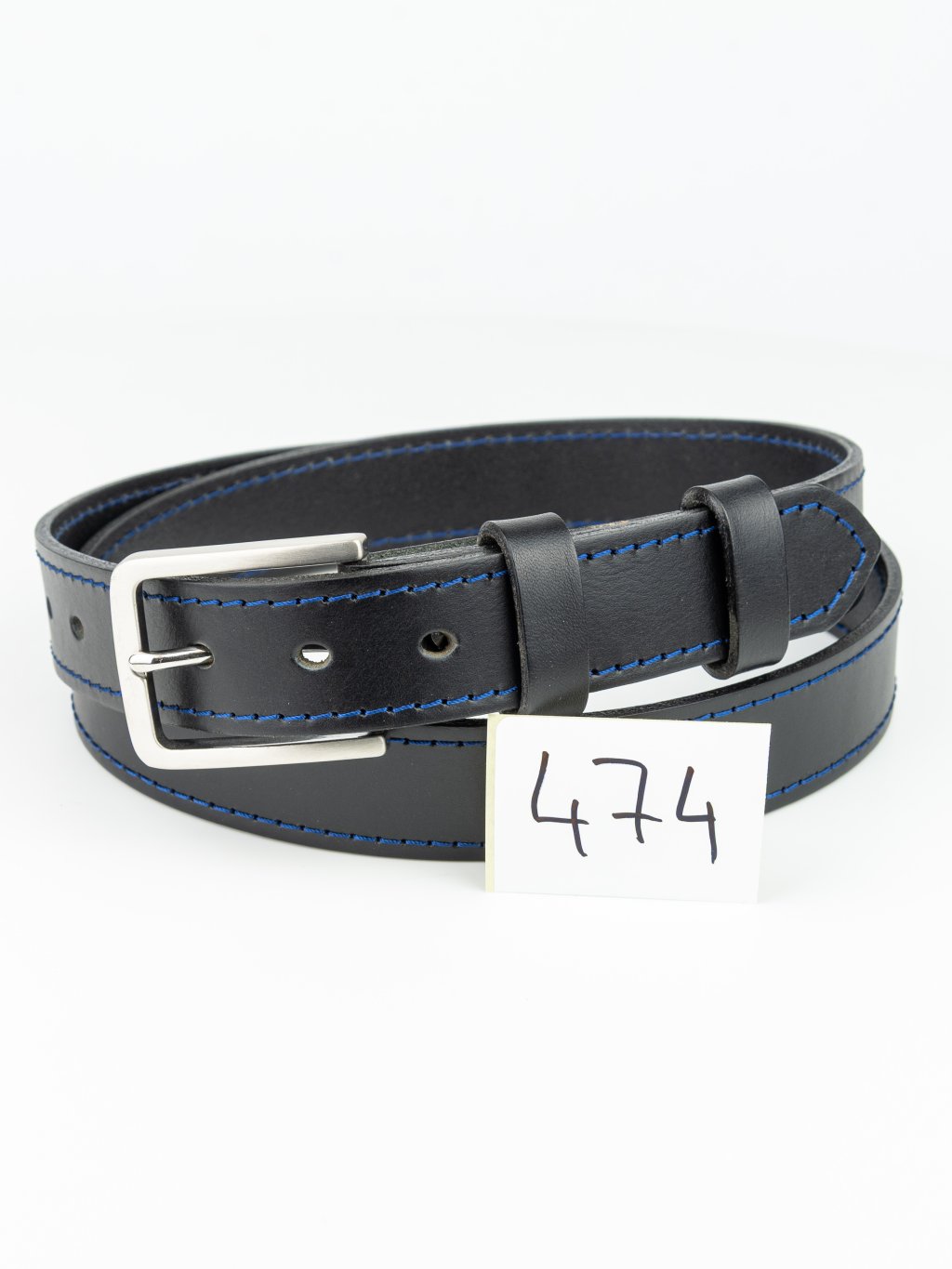 474 Henry opasek - černý prošívaný modrou, ocelová spona, velikost L (Zachraň kůži = více ks) Univerzální pánský opasek. 1. jakost. Velikost L (na obvod pasu 105 – 120 cm). Délka opasku vč. spony cca 132 cm. Ilustrační fotky a videa,