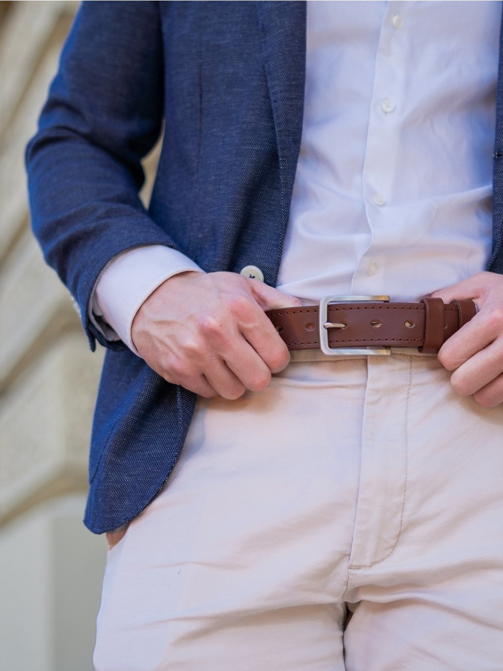 Opasek je vyroben ze silné hověziny s pečlivě zabroušenými hranami, což zaručuje jeho pohodlí a komfort při nošení. Díky těmto kvalitním materiálům opasek netlačí a je ideální volbou pro každodenní použití. Přezky z nerezové oceli či mosazi zaručují dlouhou životnost a odolnost. Pro cenově dostupnější variantu jsou k dispozici i přezky ze zinkoslitiny. Tyto nerozbitné přezky jsou navrženy tak, aby odolaly všem výzvám, které jim každodenní nošení přinese.