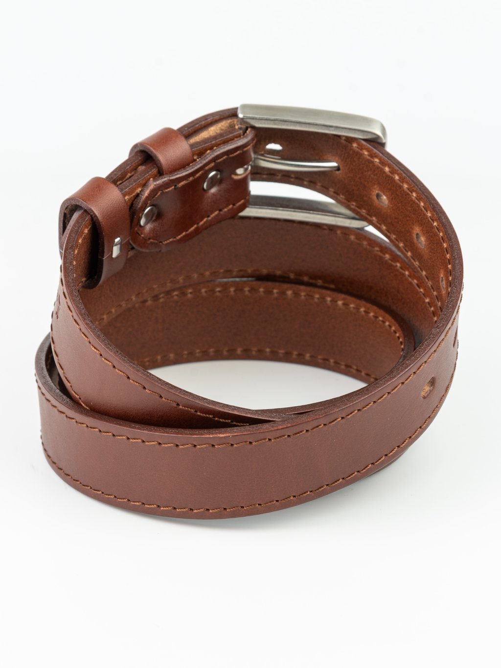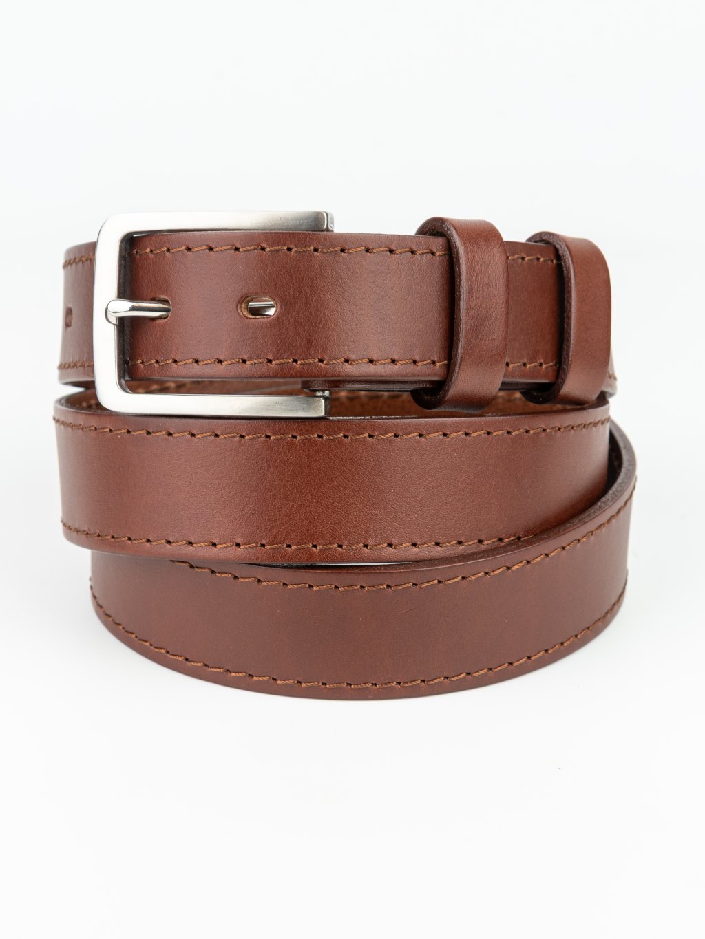 475 Henry opasek - hnědý prošívaný hnědou, ocelová spona, velikost XL (Zachraň kůži = více ks) Univerzální pánský opasek. 1. jakost. Velikost L (na obvod pasu 105 – 120 cm). Délka opasku vč. spony cca 132 cm. Ilustrační fotky a videa,