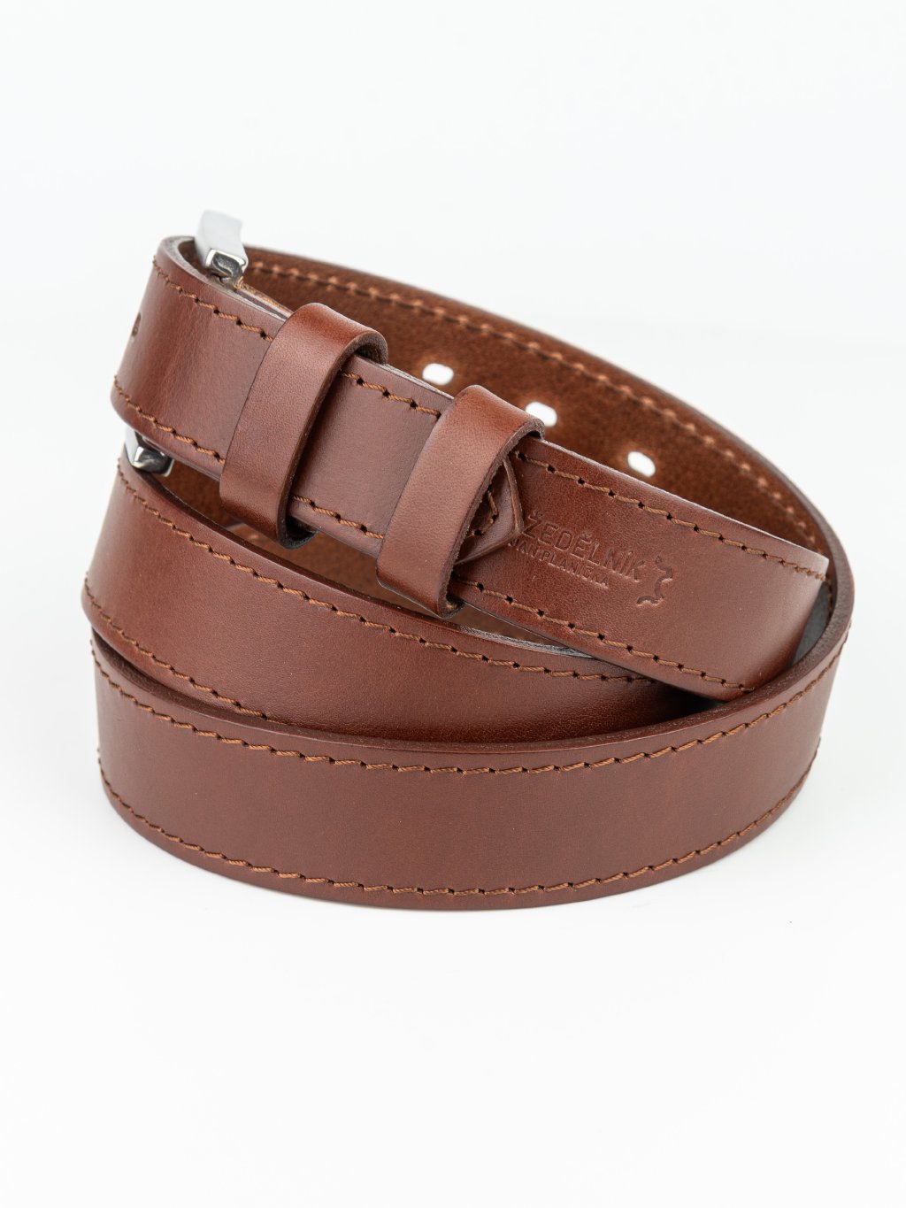 - Cca 3,3 cm široký řemen z 3,0-4,0 mm silné hověziny se zabroušenými hranami, který je pohodlný a netlačí
