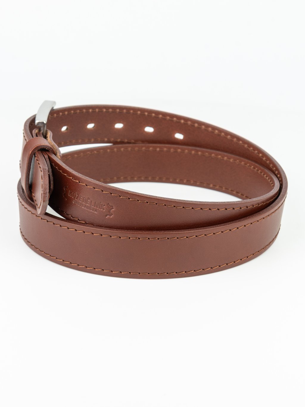 - Cca 3,3 cm široký řemen z 3,0-4,0 mm silné hověziny se zabroušenými hranami, který je pohodlný a netlačí