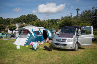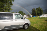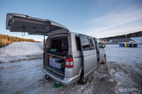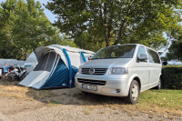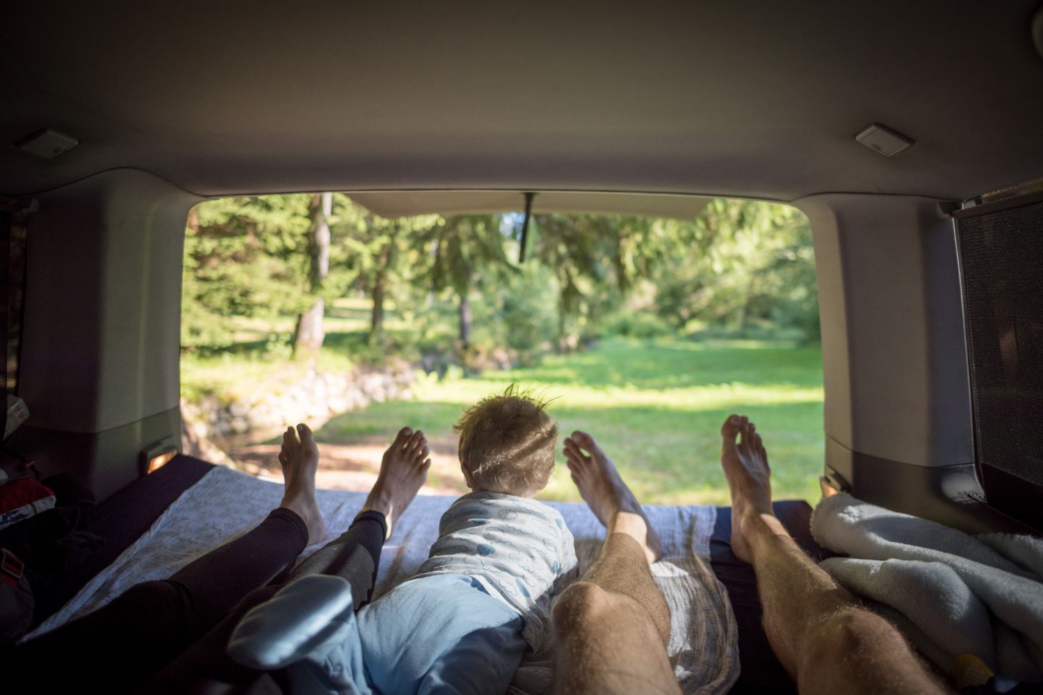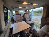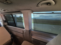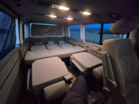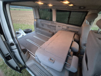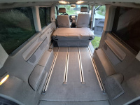 Jak jsem psal výše, chtěl jsem velký auto i proto, aby se v něm dalo kempovat. Pro 2 rodiče a 2 malinký děti to šlo, ale od těch 3-4 let už to velikostně nestačí a na přední sedačky musíte narvat dětské sedačky, takže ani tam se postel dát nedá. Ideální je to pro 2 dospělý, případně ve 2 dospělých s dítětem. Sklopíte sedačky a lavici, vytáhnete záclonky, na skla přidáte origo termoreflexní zástěny, do bočního okénka namontujete větrací panel a máte klid i v brutální bouři - otestováno na Slovinsku, kde byly všude v kempu potoky a stany lítaly.. my si leželi v teple a suchu v autě. Otočnou konzoli pod spolujezdcem, větrací panel do okna, termozástěny na přední a zadní okna i ten zbastlený stůl dávám k autu (ten není na fotkách) jako "vanlife" bonus.
