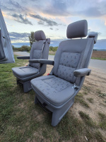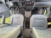 Auto má origo naftové Webasto - příhřev motoru, co se sám spouští v chladu - topí díky tomu o dost dřív. Vzadu je napevno origo tažné zařízení a pod autem plnohodnotná rezerva. Dál tam je 3-zónová klimatizace, ASR, zatmavená okna s atestem, záclonky a otevírací boční posuvná okna, homologovaná otočná konzole spolujezdce Sportcraft, odolná plastová podlaha s kolejnicemi (na vození dětí a věcí je to super skrz údržbu). Vzadu je levá strana plná skříněk a výklopný stolek. Vzadu kastlík s origo heverem. Ke všemu jsou původní plastové schránky a kryty, šuflíky apod.