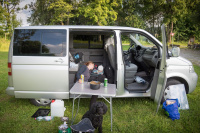 Multivan bylo vždycky moje vysněný auto. Auto, do kterýho se vleze 7 lidí, když potřebujete. Má obrovský kufr, pod kterým se dá schovat při vaření před deštěm. Auto, ve kterým dá pohodlně vyspat ve třech v podobě 2 rodiče + 1 dítě, nebo 1 rodič + 2 děti. Auto, ve kterým sedíte nahoře a máte o všem přehled, zatímco provoz kolem hekticky proudí a vy si jedete to svoje. Auto, který vás odnaučí nevozit zbytečnosti na dovolenou, protože to v pohodě vyskládáte po strop i s koly a nafouklýma míčema, protože proč je vyfukovat, když se vejdou. Zároveň to je dodávka, takže je fest bytelná, má vysoký podvozek na většinu polních cest a obrubníky neřešíte, protože pneu jsou vysoký.