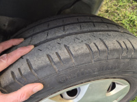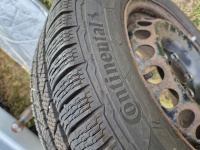 Na autě jsou letní pneu Continental na bytelných plechách s fajn poklicema. Výhledově už ale budou chtít asi vyměnit. Rozměr 216 x 65 x r16 C nestojí ale ranec a lepší vzít prémii než jezdit na stlačené tmě. K autu jsou zimáky taky Continental na stejných plechách, ale ty jsou v lepším stavu minimálně na sezónu.