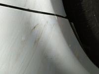 Koroze na autě v podstatě není, pokud můžu jako laik hodnotit. Řekl bych, že je jen povrchová a oproti podobným autům podobného stáří to je super. Pár orientačních fotek nejhorších míst, co jsem na autě našel, plus ten výfuk. Zadní páté dveře, co bývají komplet shnilé, mají jen pár pupínků okolo kliky.