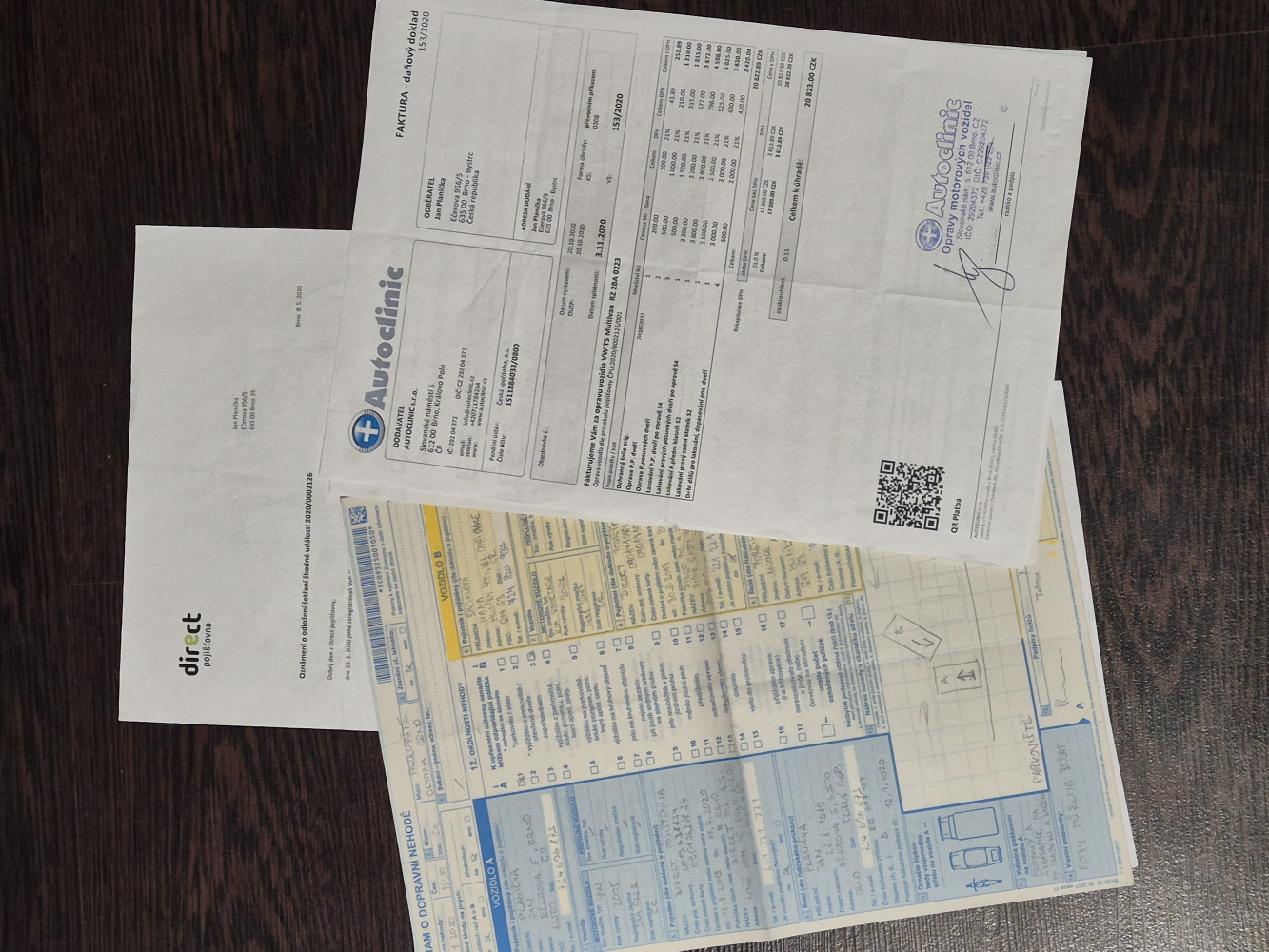 Mám od toho fůru věcí. Původní futrál se serviskou, návody k obsluze, kód rádia, soupisky většiny oprav i doklady všech STK.