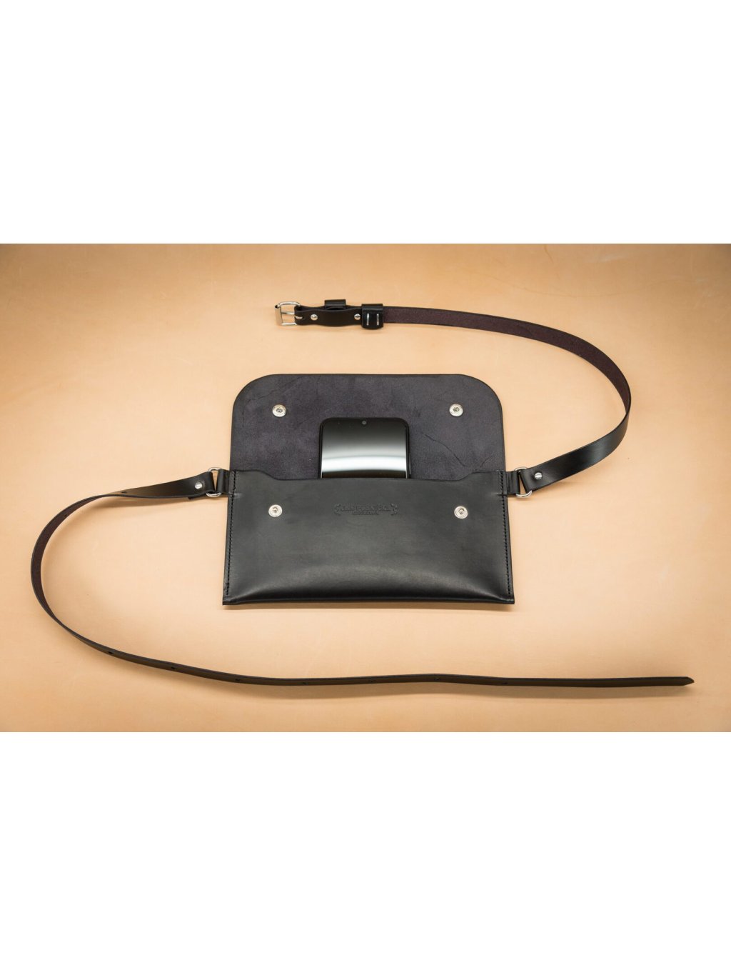 Parametry: cca 22 cm x 12 cm x 1 cm (šířka x výška x hloubka), cca 2 mm tenká hovězí hlazená třísločiněná useň. Řemínek 2 cm široký a 2 mm silná, hlazená hovězí useň, nastavitelná délka obvodu 80 až 135 cm (dírky po 5 cm).