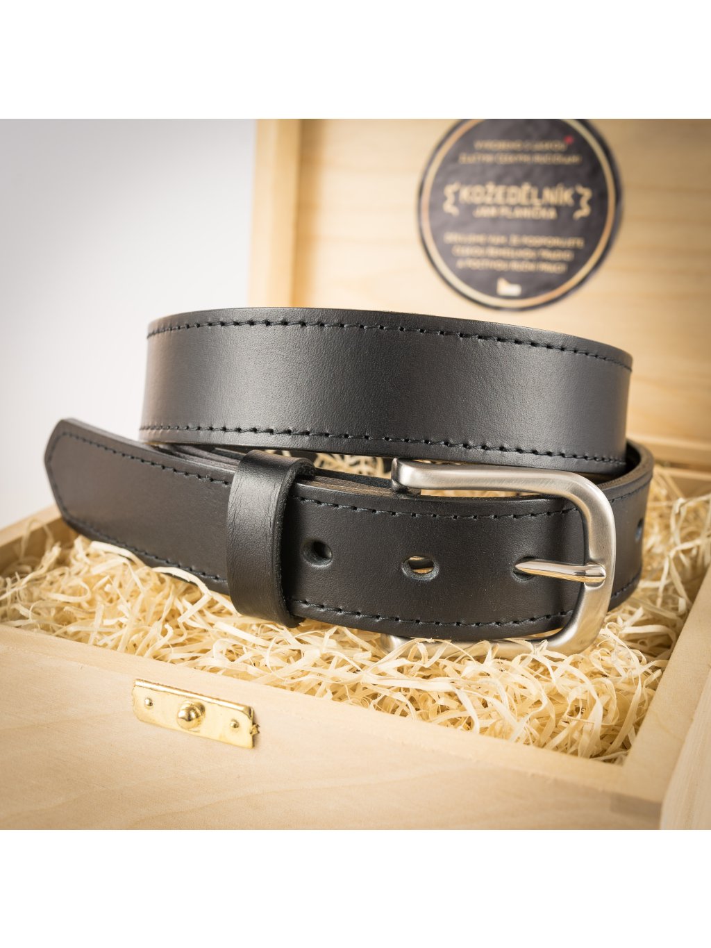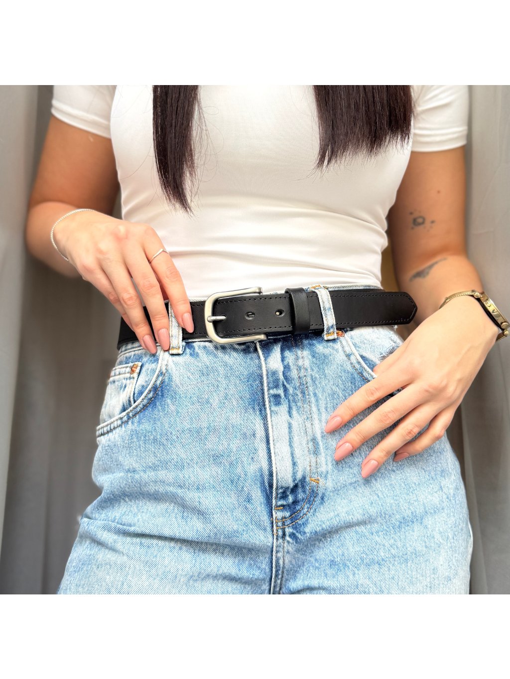 Tento elegantní kožený opasek je ideální do dámských džínů nebo kalhot a skvěle doplní každý ležérní i formálnější outfit. Je vyroben z jednoho kusu prvotřídní hovězí kůže a zpevněn jemným obšitím v barvě řemenu pro delší životnost i styl. Decentní hypoalergenní spona z nerezové oceli je nejen odolná, ale i šetrná k citlivé pokožce. Díky zabarveným hranám opasek neobarví ani nepoškodí vaše oblečení a zůstává příjemný na nošení po celý den. Délku si navíc zvolíte přesně podle sebe, takže vám padne na míru.