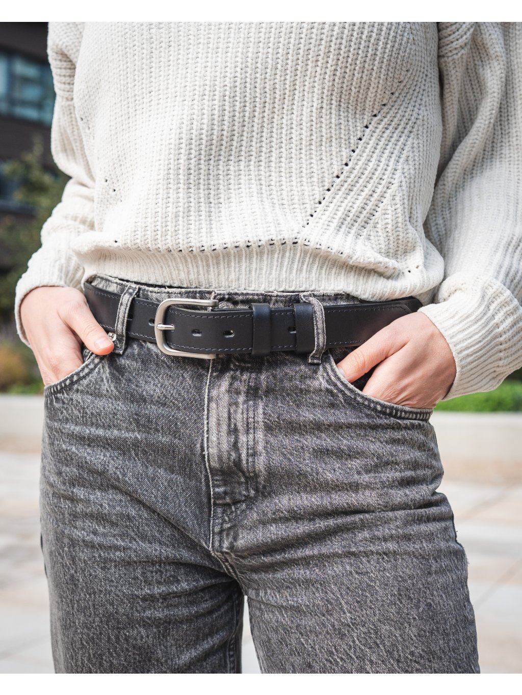 Mia Opasek široký - černý Obšitý dámský opasek do jeansů s hypoalergenní nerezovou sponou.