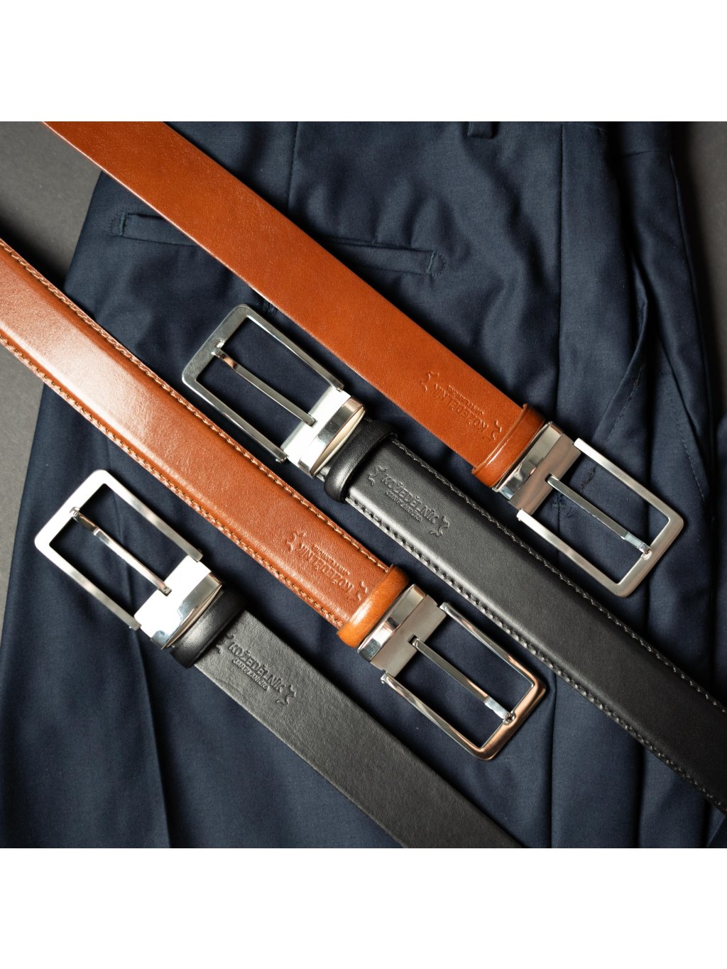 Vittorio DÁRKOVÝ SET opasků - černý a koňakový Výhodný set kožených opasků do obleku