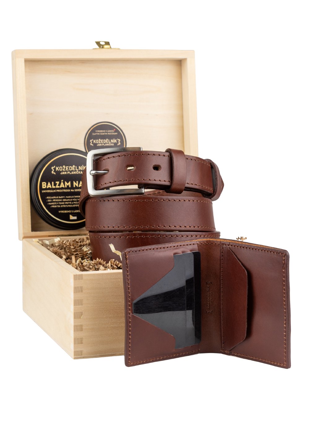- Možnost luxusního dárkového balení v dřevěném boxu, vhodném ke skladování opasku nebo jiných cenností