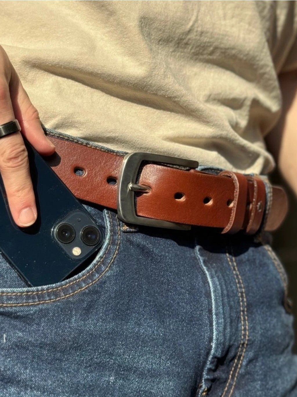 Tento opasek z poctivé hověziny o šířce cca 3,8 cm je pevný, přitom příjemně poddajný a pohodlný na nošení. Každý kus je ručně vyroben na míru vašemu pasu a doplněn nerozbitnou přezkou z nerezové oceli. Možnost ražby monogramu či jména dodávají opasku osobitý charakter. Dvě pevné kožené průvlečky drží volný konec přesně tam, kde má být – čistě a bez vyčnívání. Celý dojem završuje luxusní dárkový box ze dřeva, díky kterému se opasek stává ideálním dárkem i stylovým doplňkem pro každodenní nošení. S bytelnou karabinou na klíče nebo řetěz od peněženky tvoří perfektní barecně sladěnou kombinaci https://www.kozedelnik.cz/masivni-klicenka-s-karabinou-na-opasek/