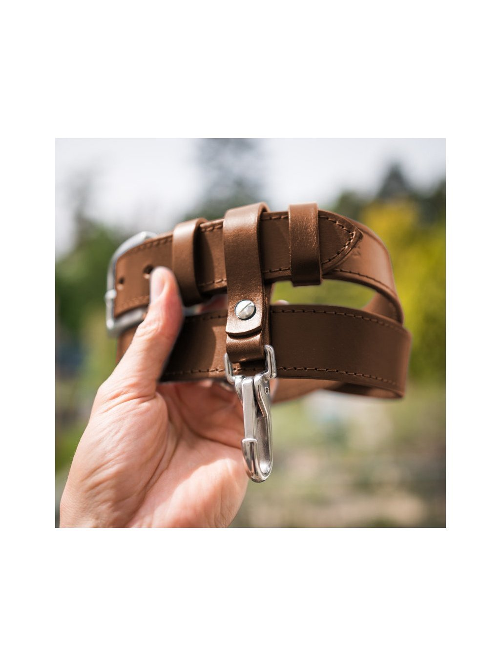 - cca 3,8 cm široký řemen z 3,0-4,0 mm silné hověziny se zabroušenými hranami, který je pohodlný a netlačí