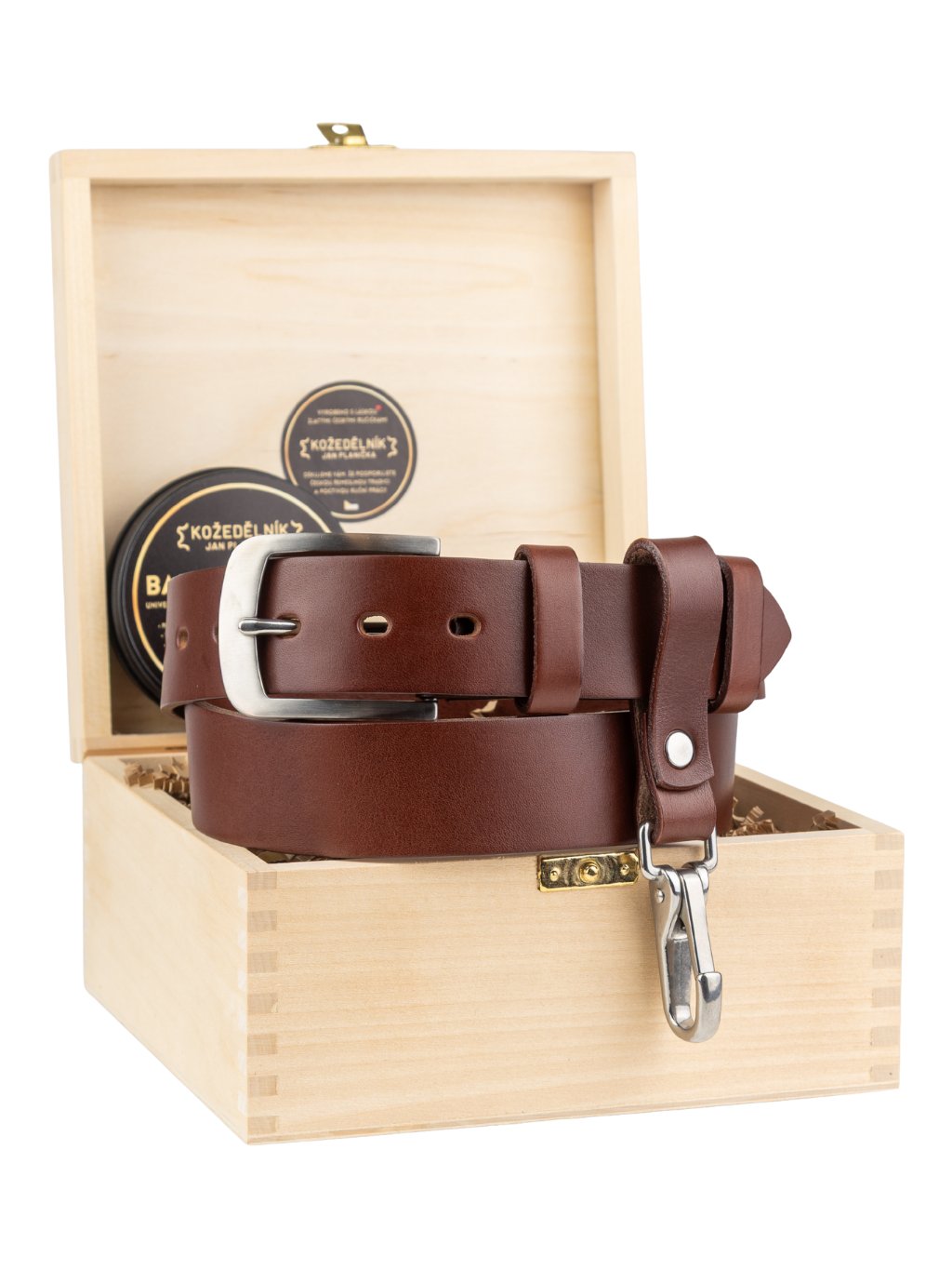 - Luxusní dárkové balení v dřevěném boxu, vhodném ke skladování opasku nebo jiných cenností