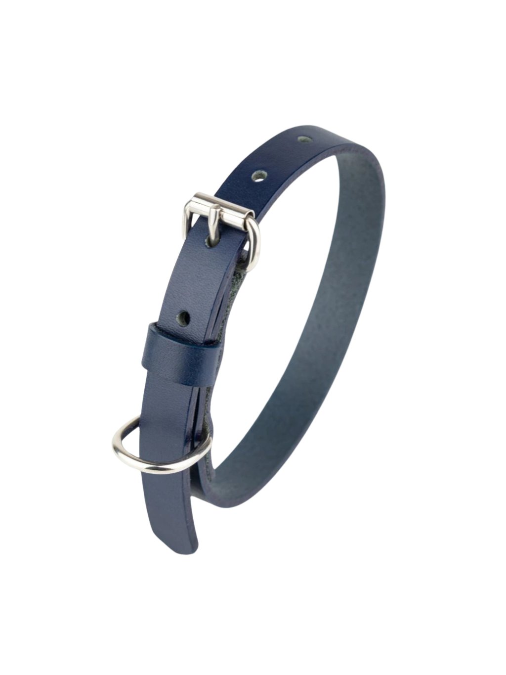 Fifinka Obojek pro malého psa - modrý Pevný kožený obojek na malá psí plemena. Šířka 1,5 cm.