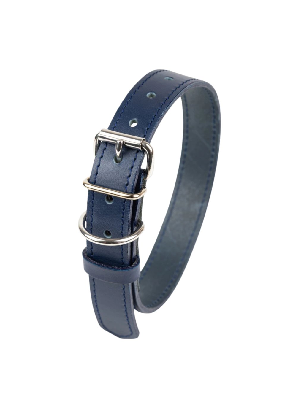 Fousek Obojek pro středního psa - modrý Pevný kožený obojek na střední psí plemena. Šířka 2,5 cm.