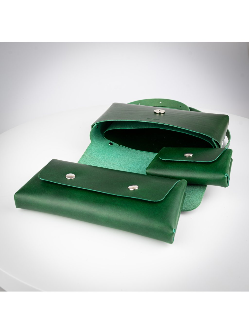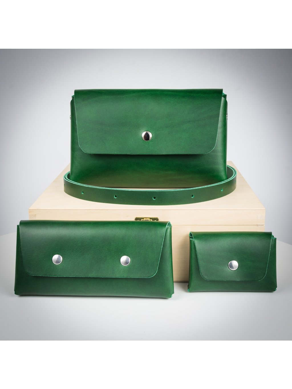 Obsahuje kabelku, dámskou peněženku a kompaktní peněženku.