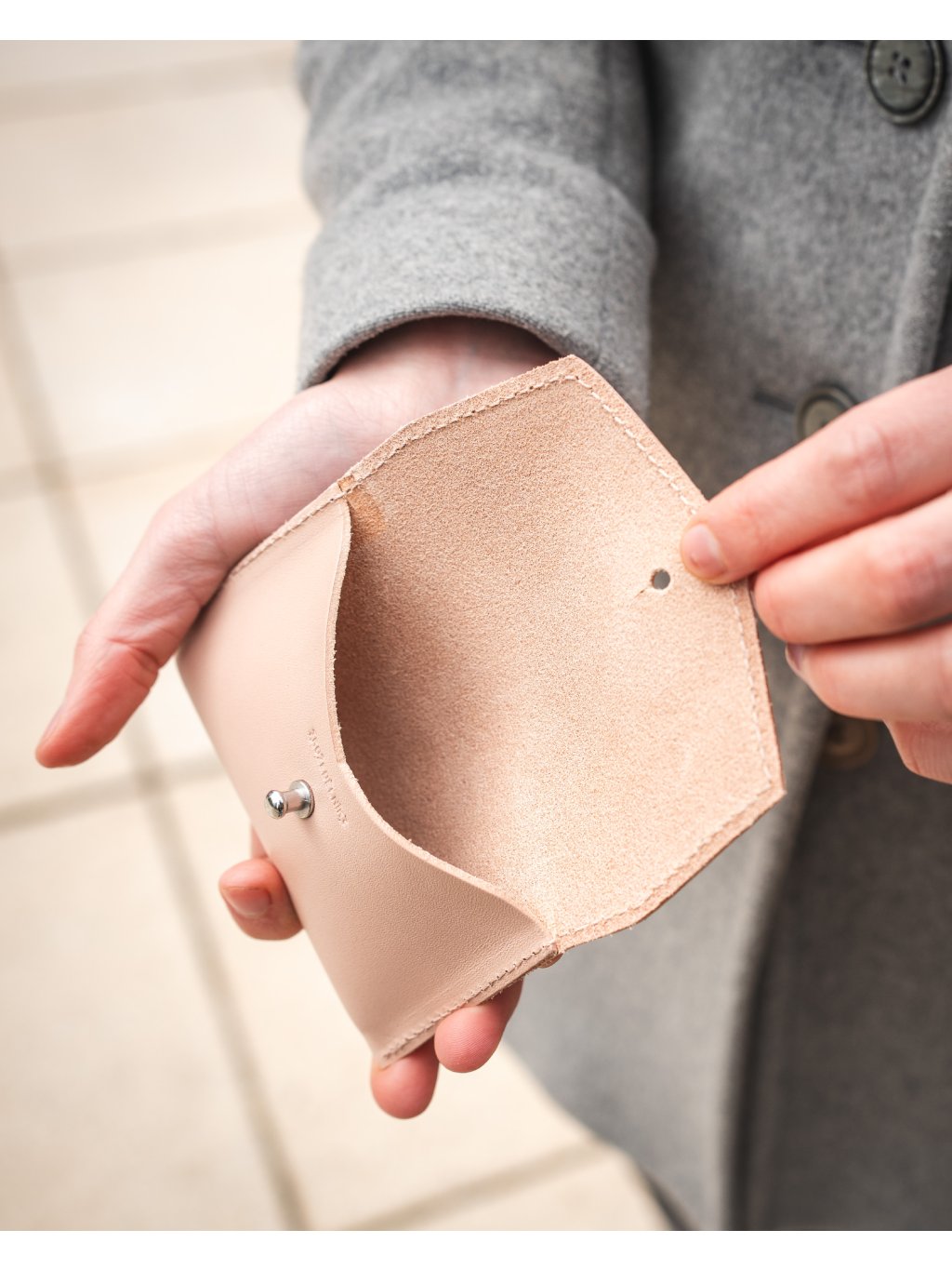 Minimalistická a elegantní kapsička, která skvěle ladí s našimi ledvinkami Zoe. Je ušitá z jemnější hovězí kůže a dostupná ve více barvách. Díky kompaktní velikosti se pohodlně vejde do kapsy i kabelky. Pojme 10–12 karet, složené bankovky i pár drobných, a vše bezpečně drží mosazný druk.