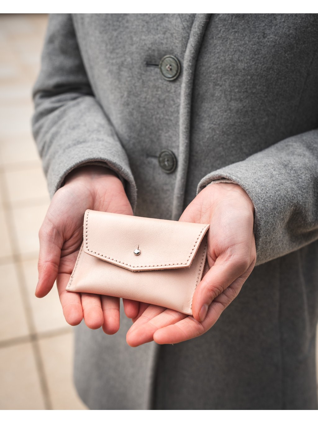 Mia Peněženka - pudrová Minimalistická kapsička na peníze, karty i vizitky.