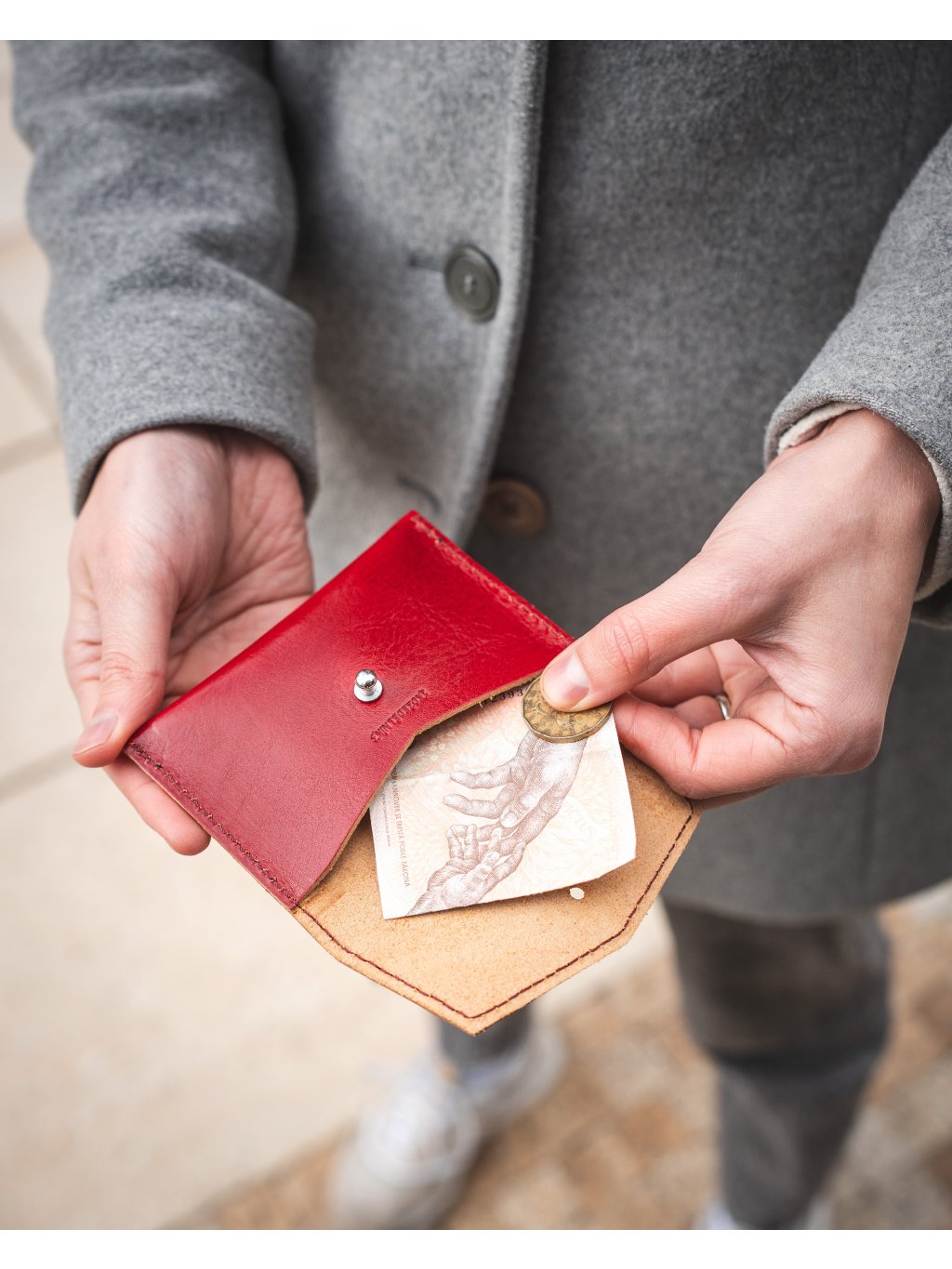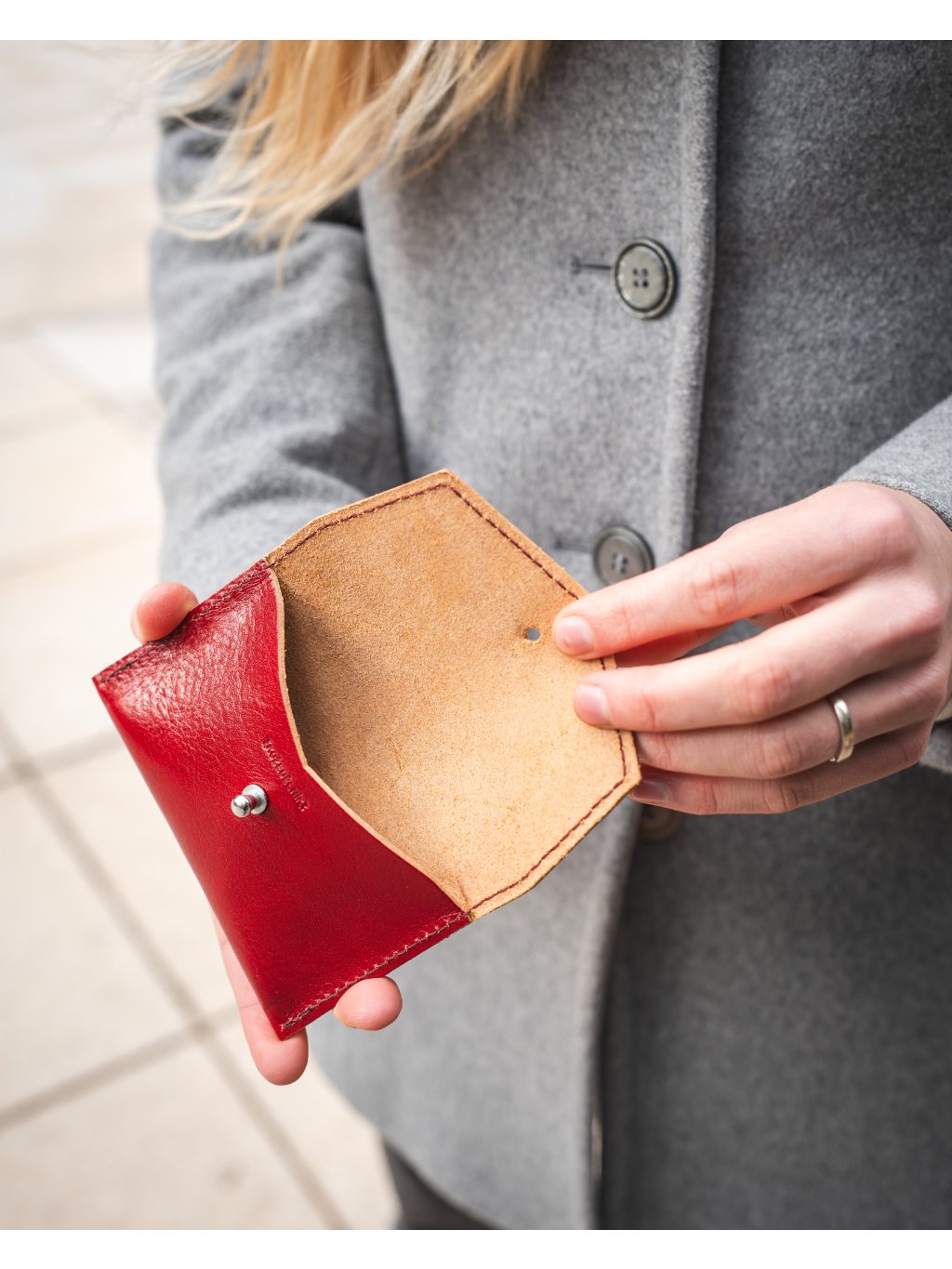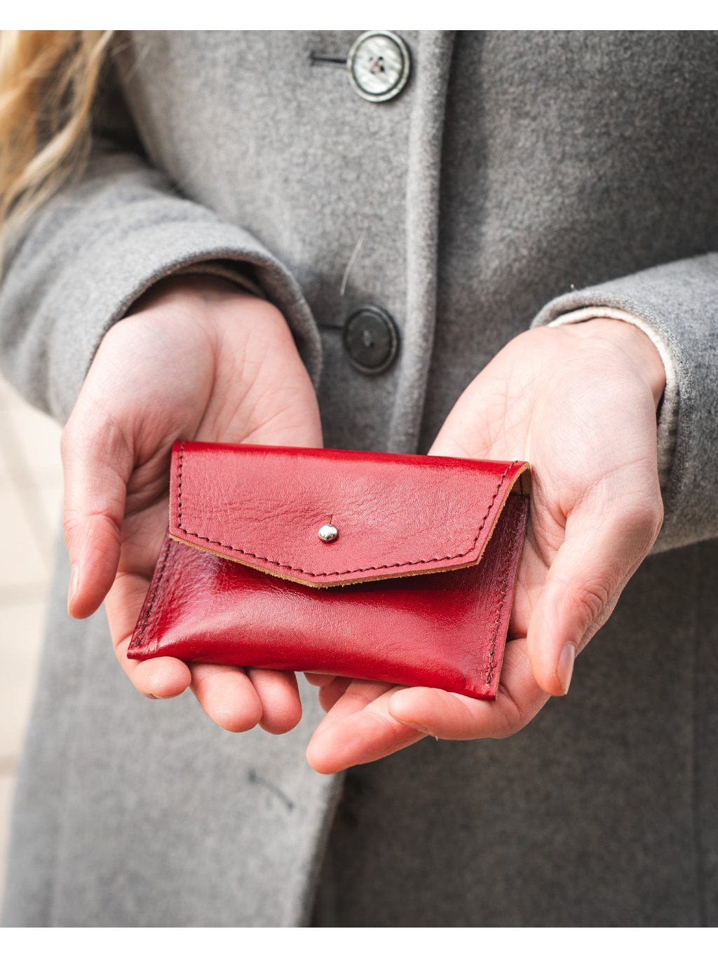 Mia Peněženka - červená Minimalistická kapsička na peníze, karty i vizitky.