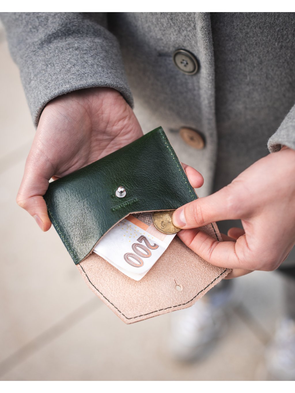 Mia Peněženka - zelená Minimalistická kapsička na peníze, karty i vizitky.