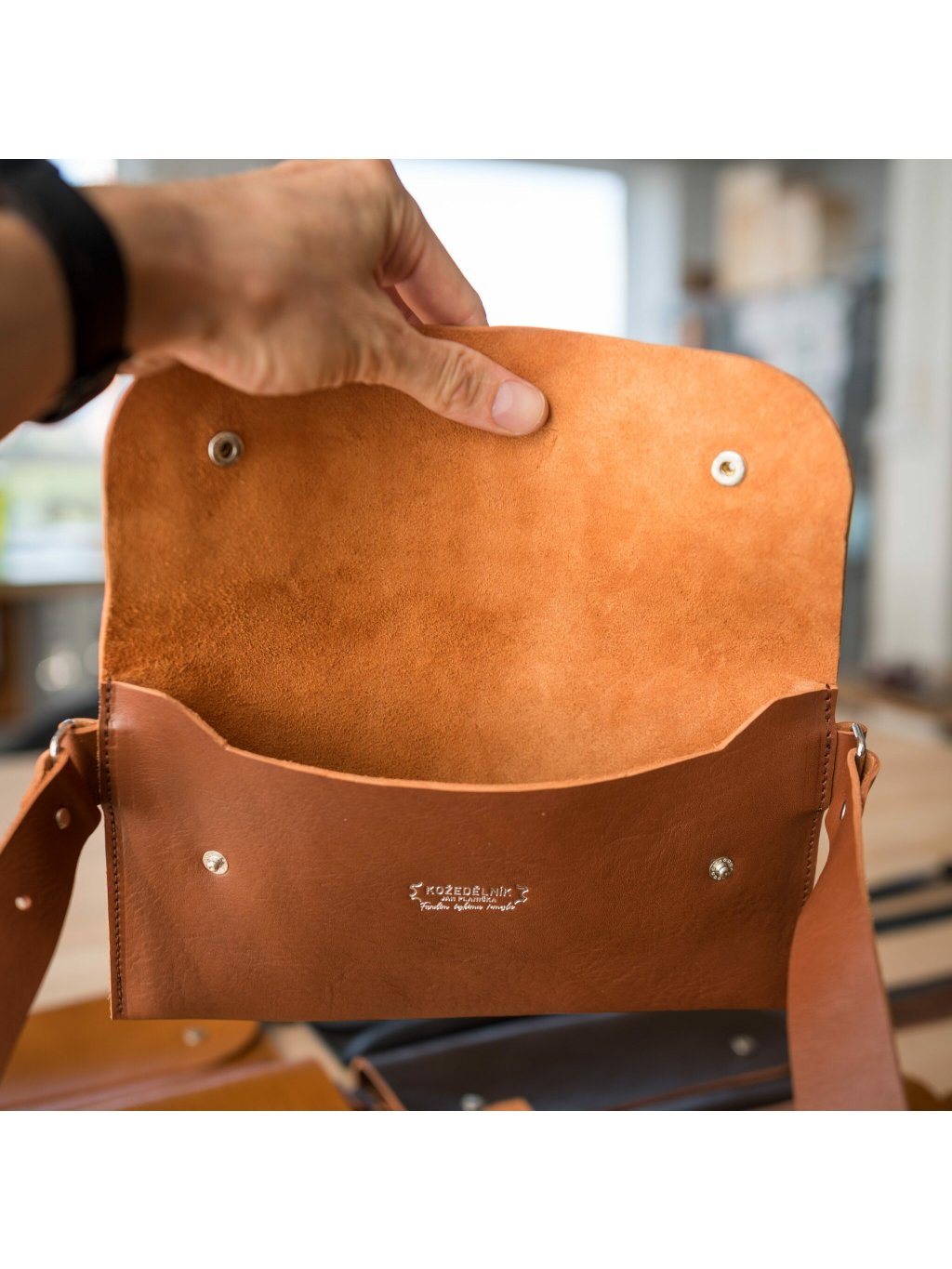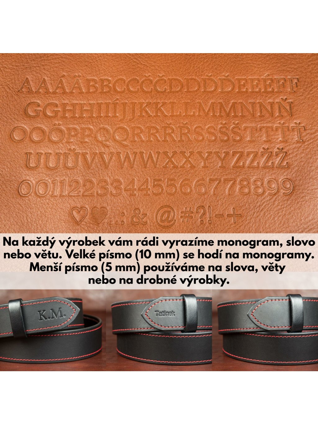 Praktická dámská ledvinka z lícové hovězí usně, vhodná pro každou příležitost – od procházek v přírodě, přes výlety z dovolenkového resortu, až po setkávání s přáteli v nočním městě. Do ledvinky se vejde to nejnutnější, co potřebujete vždy, když vyrazíte ven – mobilní telefon, klíče nebo další drobnosti. Nastavitelný plochý řemínek s nerezovou přezkou zajistí pohodlné nošení u pasu i šikmo přes záda. Zapínání řeší dvojice mosazných druků ve stříbrné nebo zlaté barvě. Oproti fotkám je ražba loga bezbarvá. Parametry: cca 26 cm x 14 cm x 2 cm (šířka x výška x hloubka), valchovaná měkčí 2 mm silná hovězí třísločiněná useň, odolná proti vodě i poškrábání. Popruh široký 3 cm, nastavitelný na cca 80 až 130 cm. Monogram: rádi Vám z ledvinky uděláme podepsaný originál přímo pro Vás. Text razíme viditelně na čelní stranu kabelky, doprostřed mezi druky (foto písmen a varianty najdete v galerii fotek výše) Barevná stálost: Používáme precizně zpracovanou a certifikovanou třísločiněnou useň z evropských koželužen. Kůže=useň je ale stejně jako třeba dřevo přírodní materiál a ne žádná plastová koženka, takže používáním obvykle patinuje a některé druhy a barvy kůží mohou být trochu náchylnější k otěru a šmouhám na světlém oblečení. Jde o vlastnost prémiového přírodního materiálu a je dobré to nejdříve při nošení vyzkoušet.