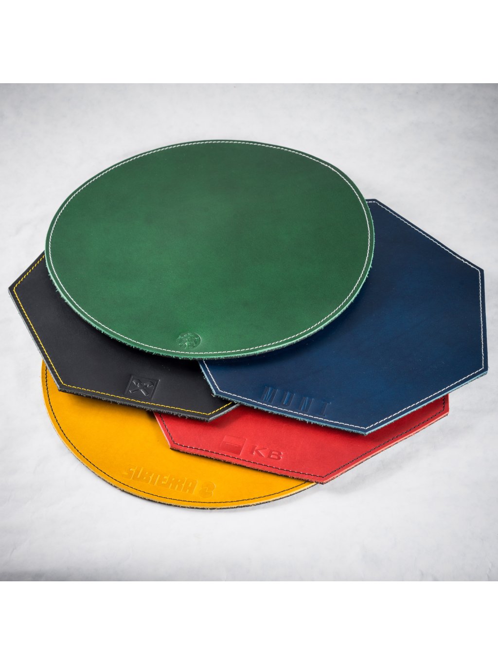 Designová podložka pod myš z hladké hovězí kůže v originálních tvarech. Do kanceláře i domů. Vkusný doplněk, který vám zpříjemní každé sezení u počítače.
