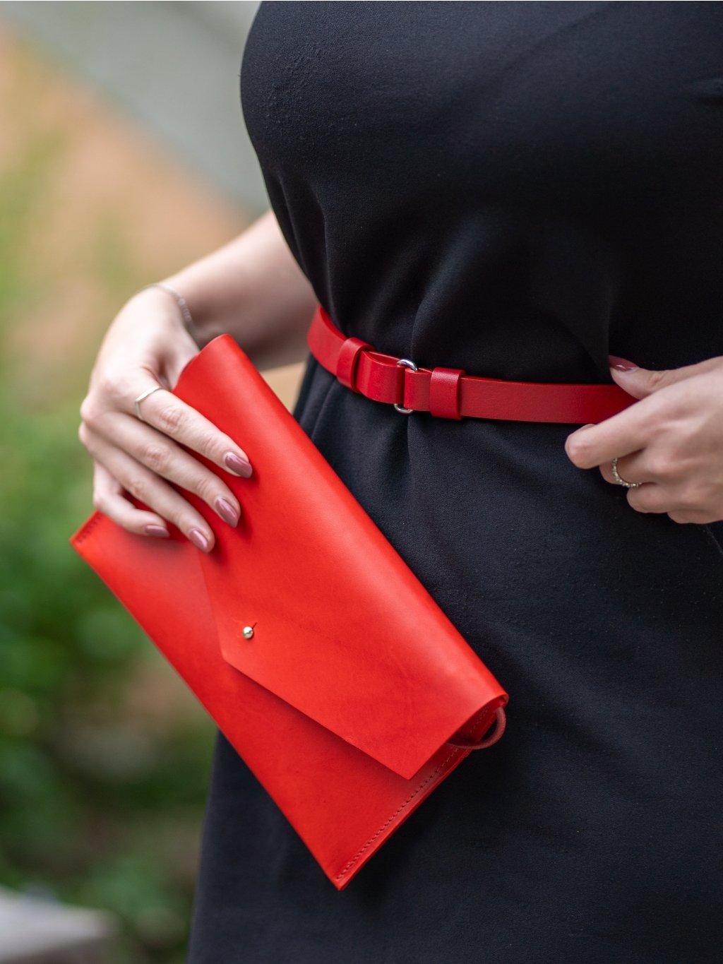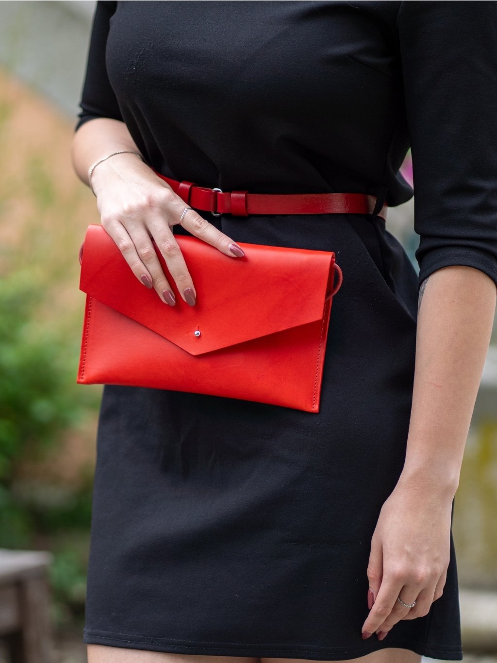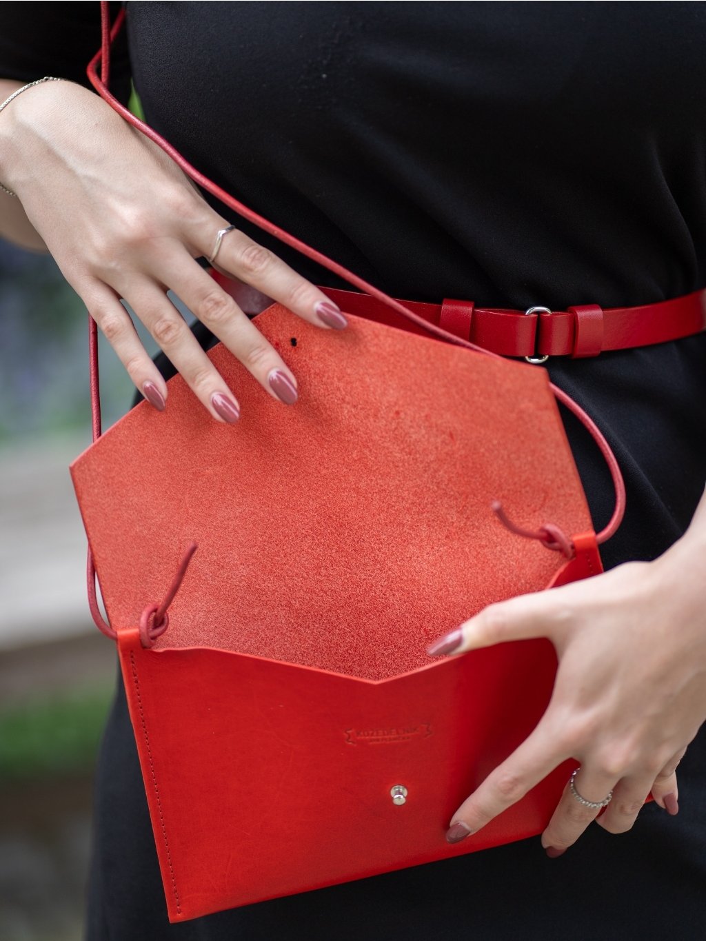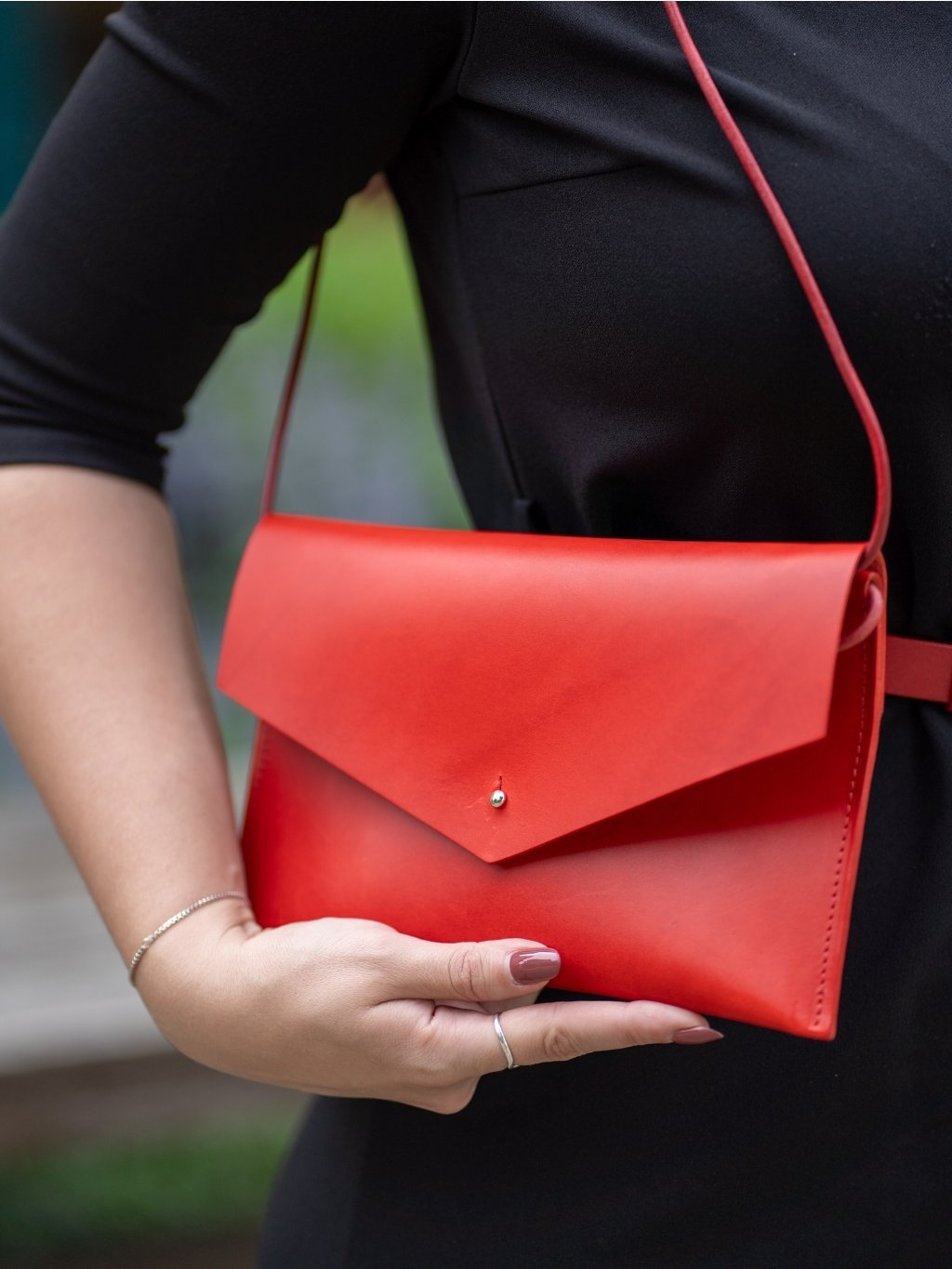 Tahle kabelka je náš bestseller – minimalistické psaníčko z prvotřídní hladké hovězí usně, které si oblíbíte pro jeho všestrannost. Skvěle doplní outfit na svatbu, do města i na výlet. Uvnitř je prostor na mobil, klíče a další nezbytnosti, praktické sedlářské zapínání zaručuje jednoduchou manipulaci. Tenký kožený popruh (cca 140 cm) můžete schovat dovnitř nebo odepnout a nosit kabelku v ruce. Na přání ji ozdobíme vaším monogramem nad zapínáním. Krásně ladí s ozdobným páskem Emily ze stejné kolekce.