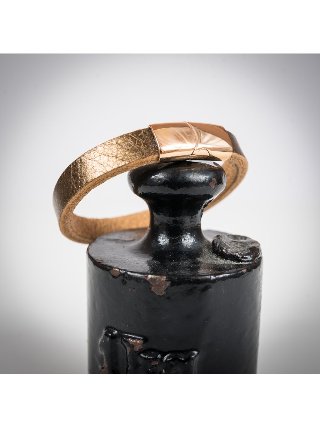 Julie Náramek užší - zlatý Elegantní kožený náramek s magnetickým kovovým zapínáním.