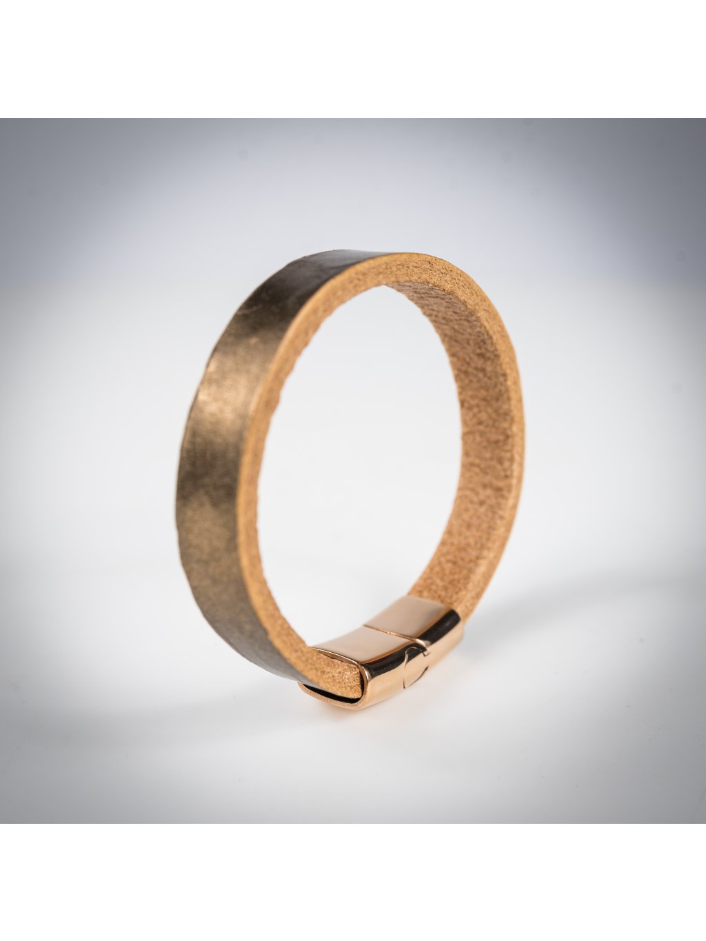 Elegantní užší kožený náramek s magnetickým kovovým zapínáním v lesklé povrchové úpravě