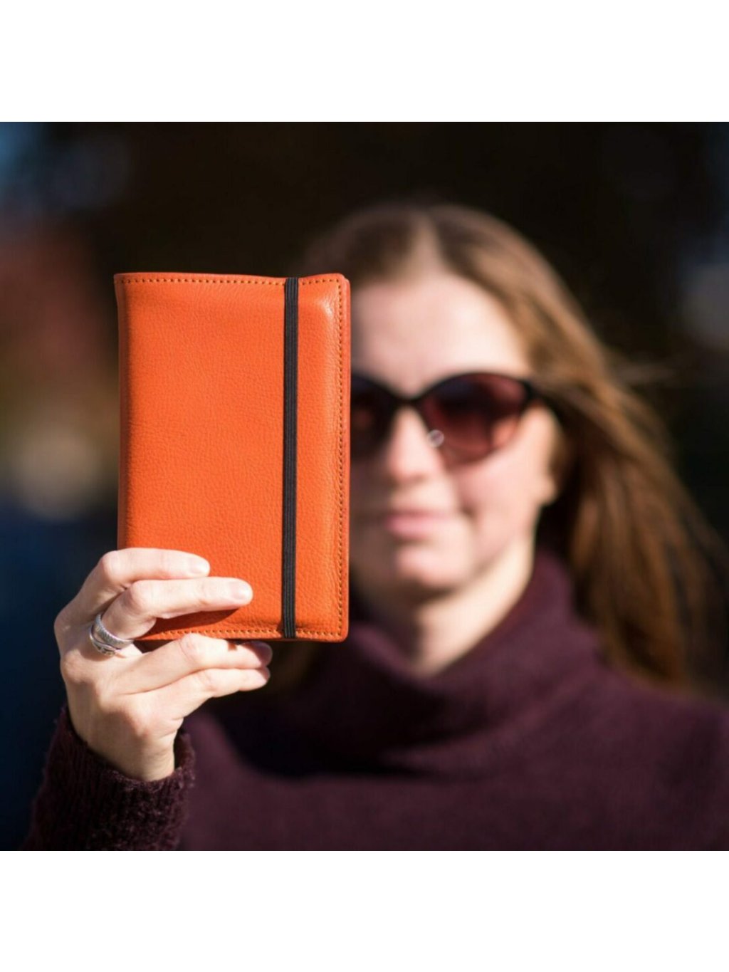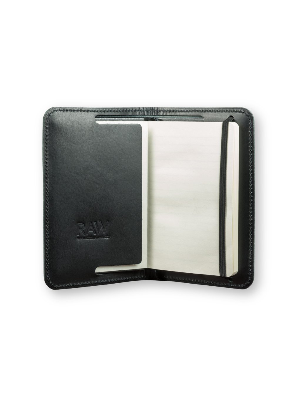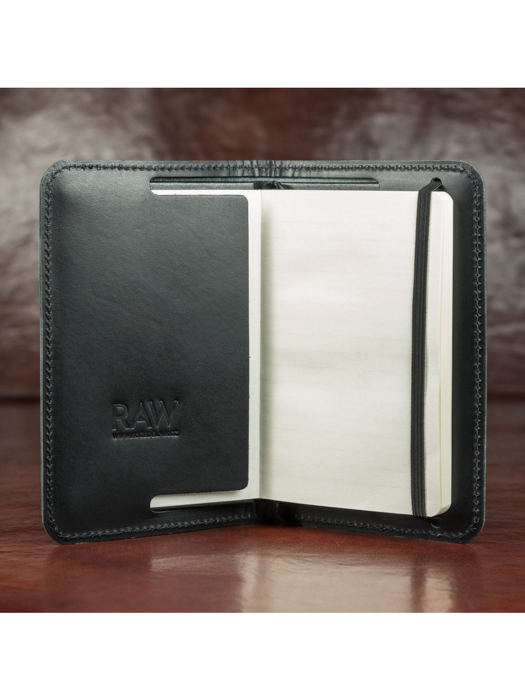 Decentní kožený obal na zápisník z lícové hovězí usně v kapesní velikosti A6.