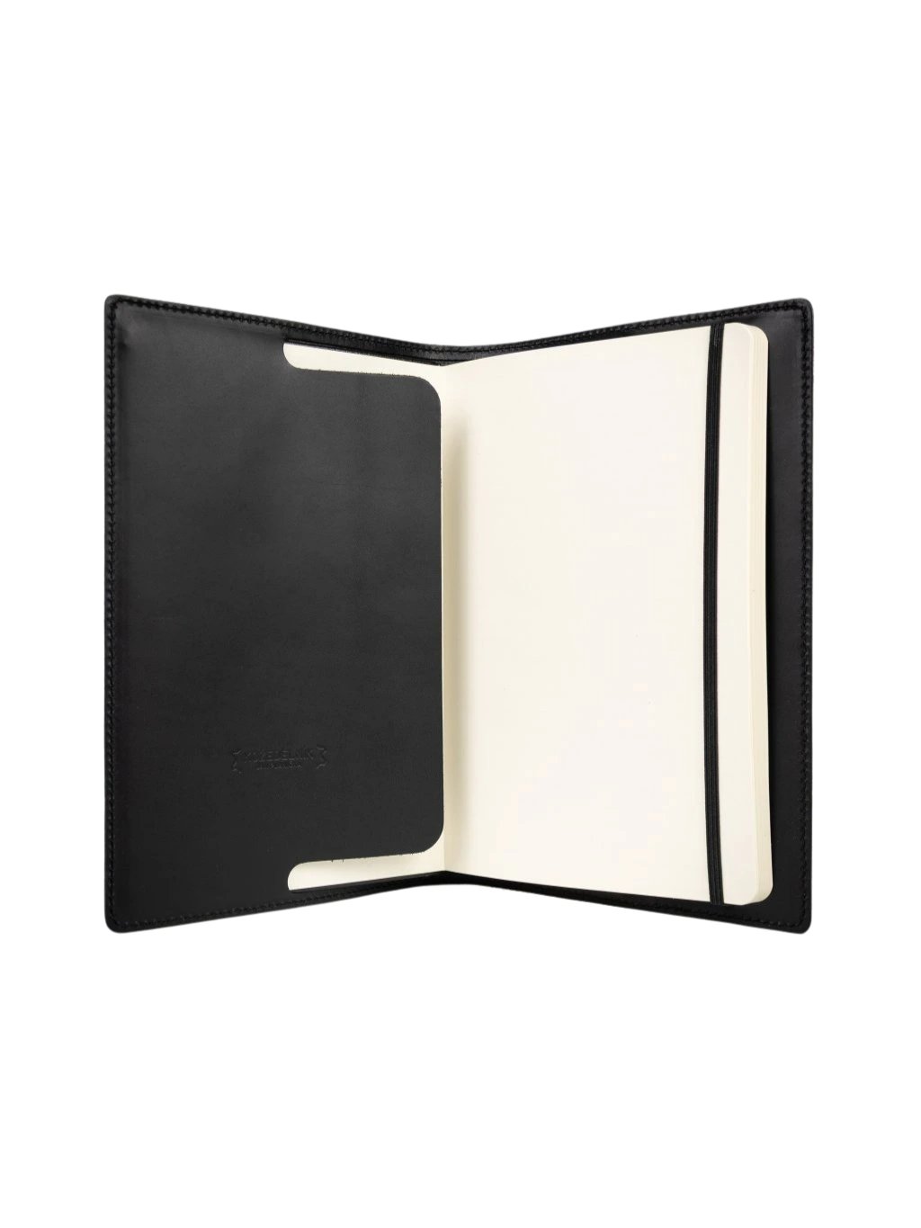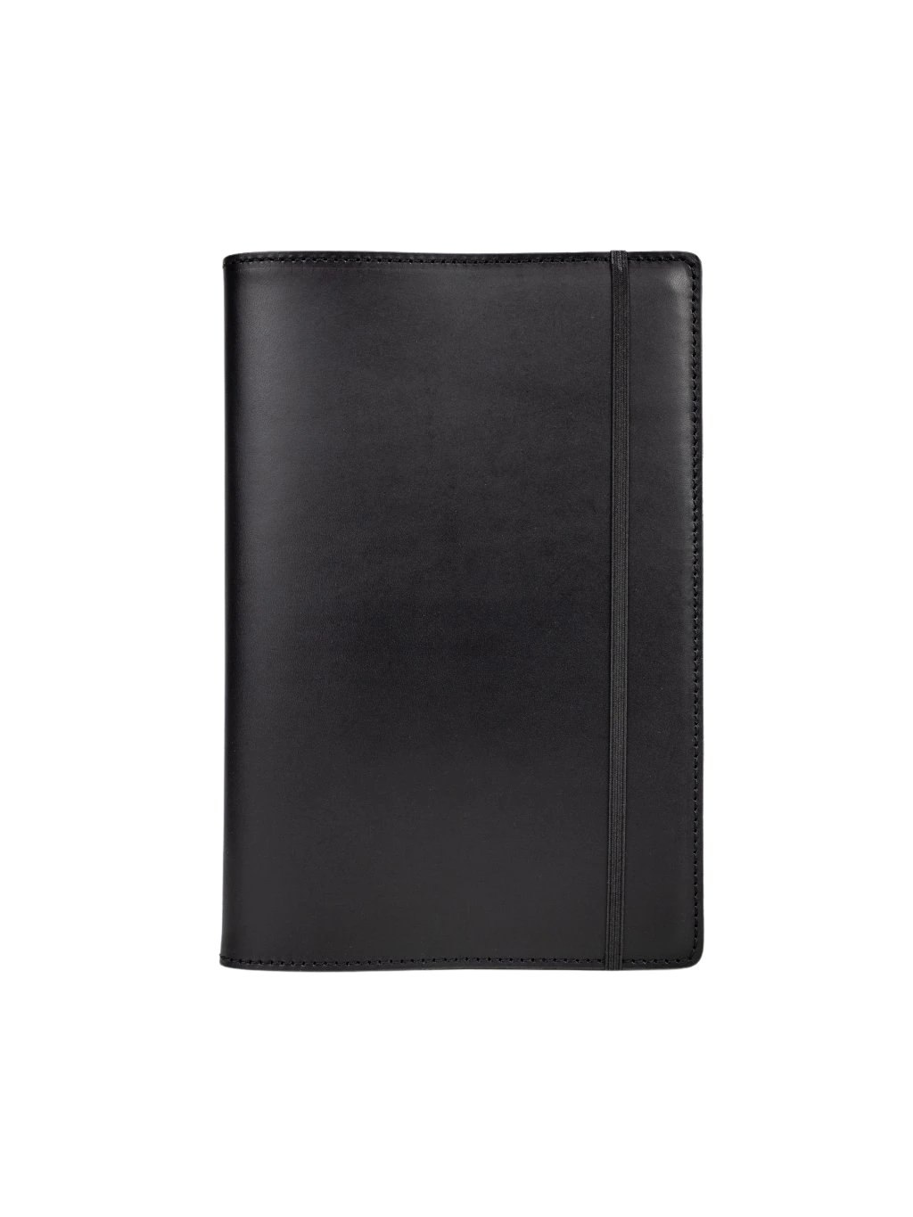 Decentní kožený obal na zápisník z lícové hovězí usně v kapesní velikosti A5.