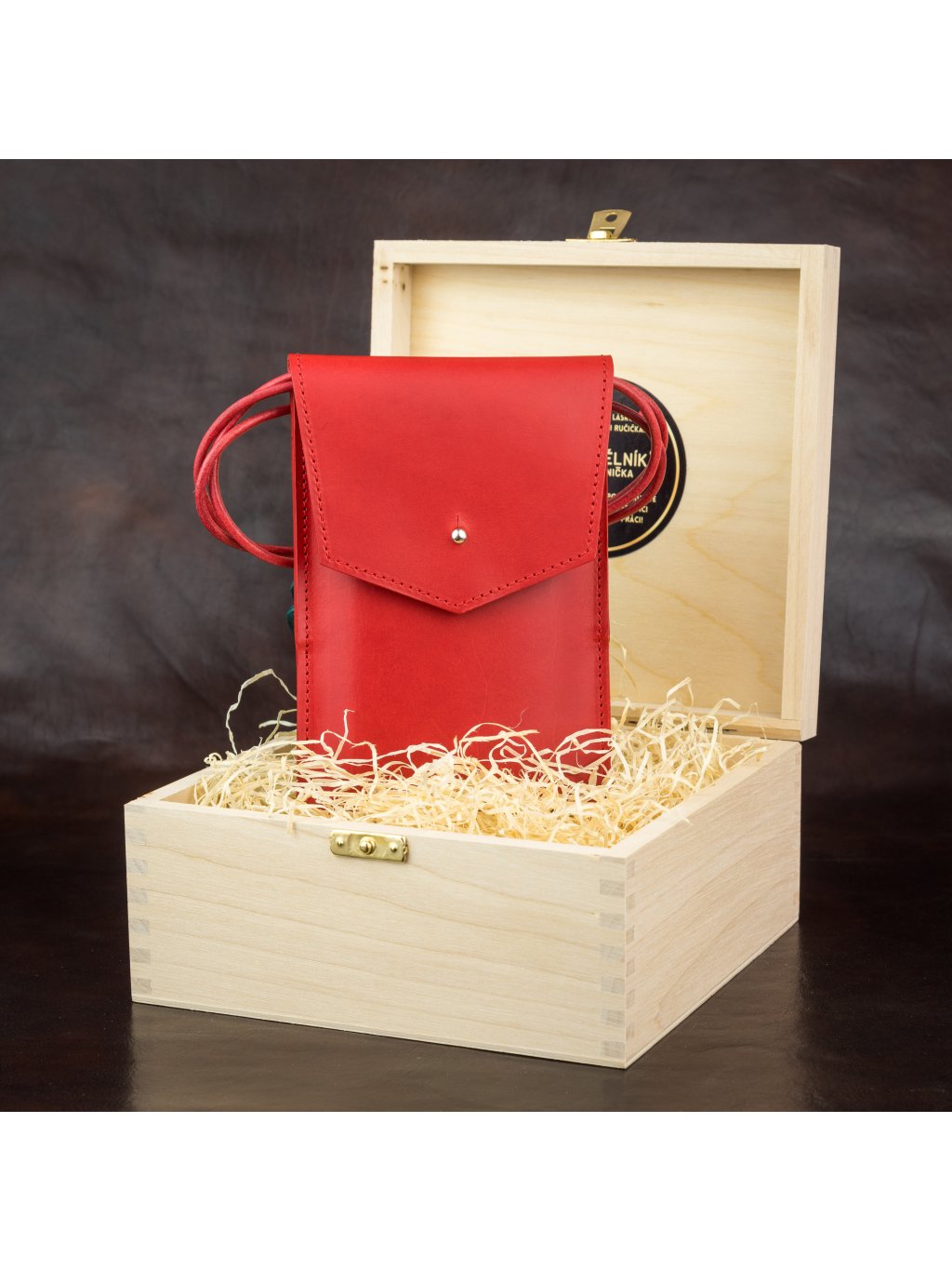 Parametry: hovězí useň o síle cca 1,5 mm, rozměry pouzdra cca 12,5 x 18 cm. Dovnitř se vejde i velký telefon Samsung S24 Plus v silikonovém pouzdře, takže se tam vejde prakticky každý mobil. Délka šňůrky vč. uzlíků 140 cm (lze libovolně regulovat).