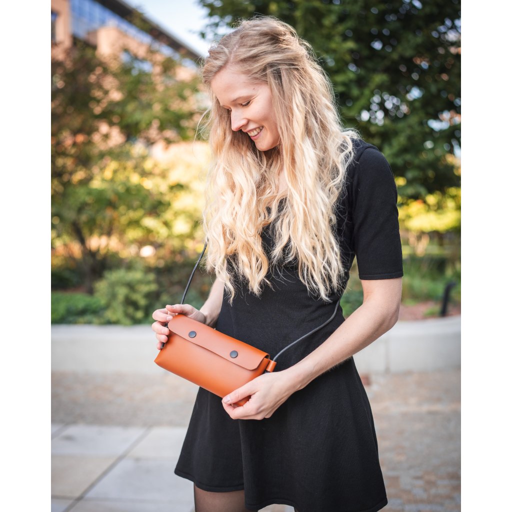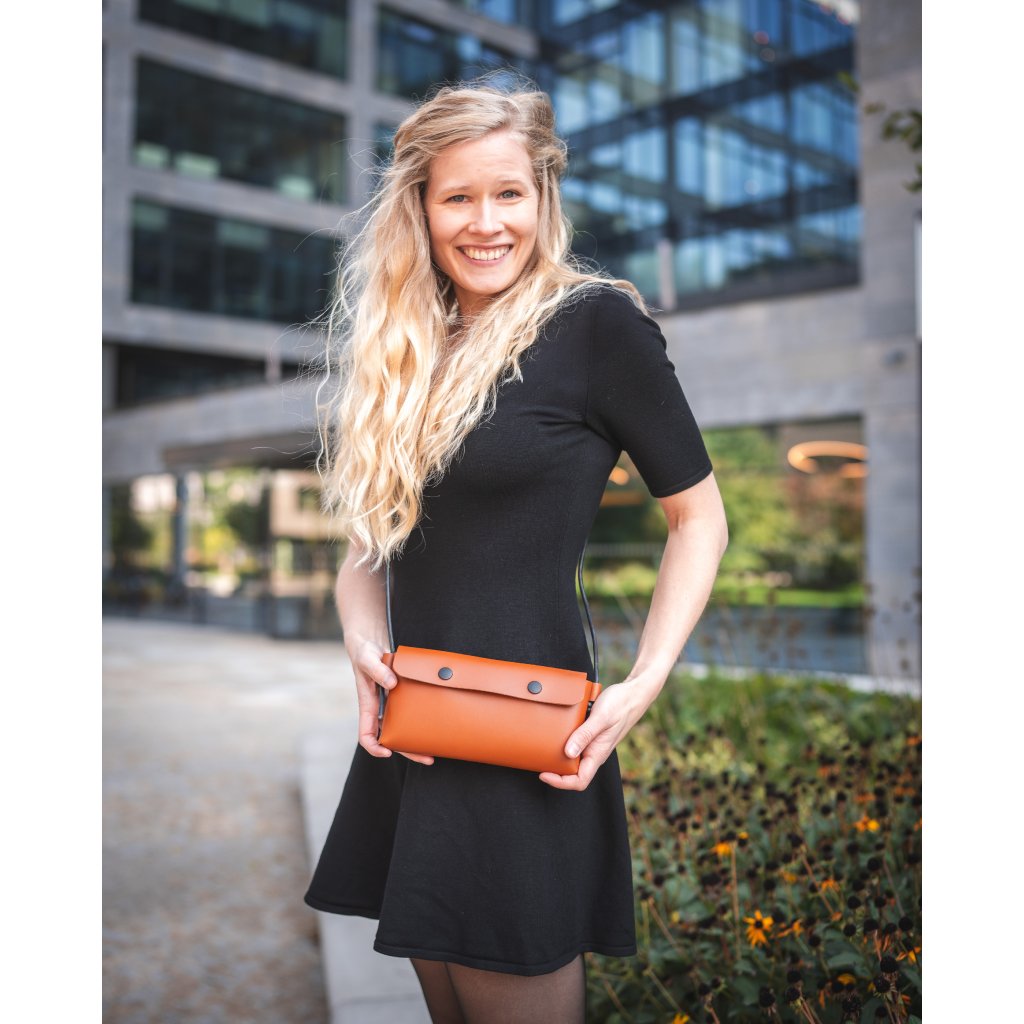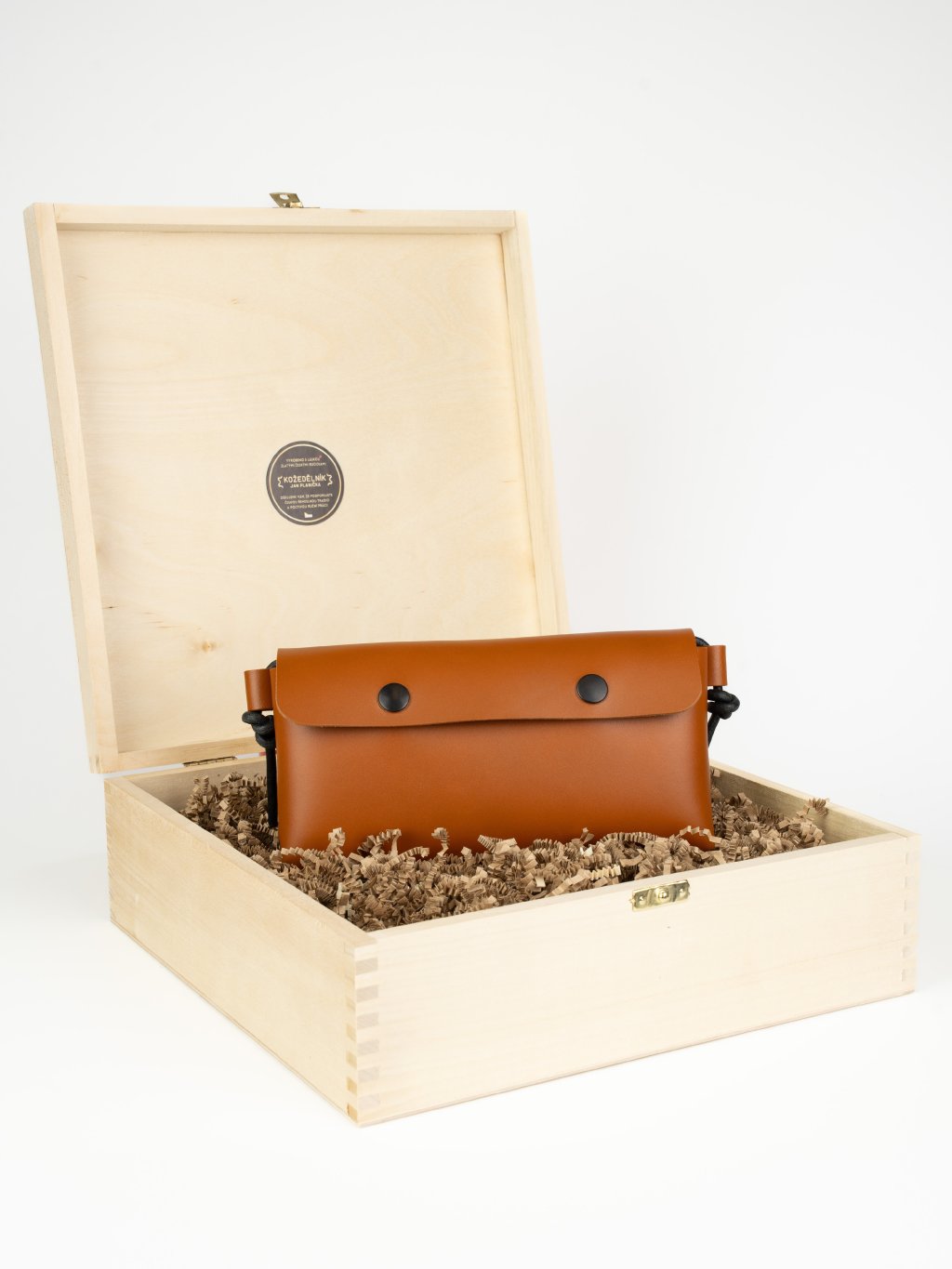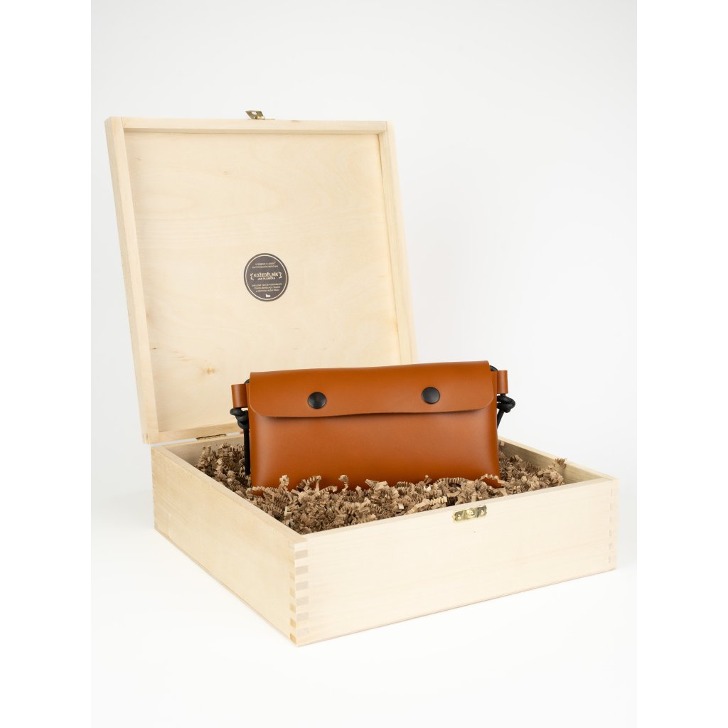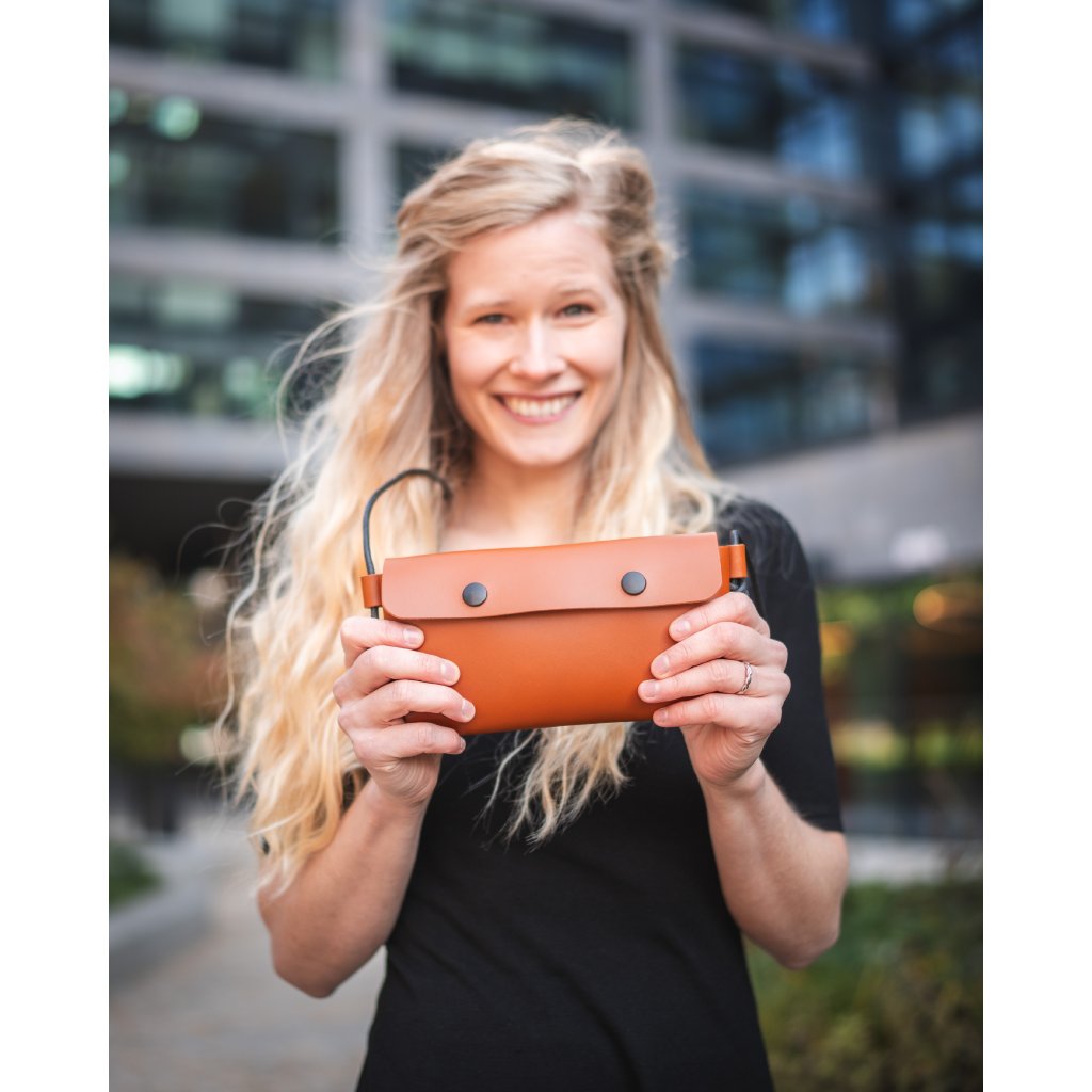 Tato elegantní kabelka z italské třísločiněné usně je lehká, ale překvapivě prostorná – pojme mobil, klíče i drobnosti. Díky nastavitelnému 120cm popruhu ji nosíte přes rameno nebo crossbody. Pevné zapínání na druky drží obsah bezpečně, a kabelka skvěle funguje i jako vnitřní doplněk k tašce Laura. Decentní logo uvnitř a možnost ražby na víko jí dodávají osobní a stylový šmrnc.