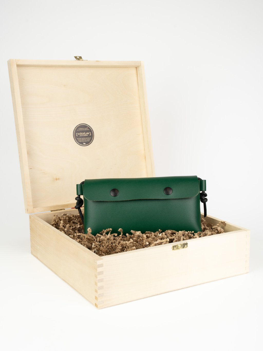 Tato elegantní kabelka z italské třísločiněné usně je lehká, ale překvapivě prostorná – pojme mobil, klíče i drobnosti. Díky nastavitelnému 120cm popruhu ji nosíte přes rameno nebo crossbody. Pevné zapínání na druky drží obsah bezpečně, a kabelka skvěle funguje i jako vnitřní doplněk k tašce Laura. Decentní logo uvnitř a možnost ražby na víko jí dodávají osobní a stylový šmrnc.