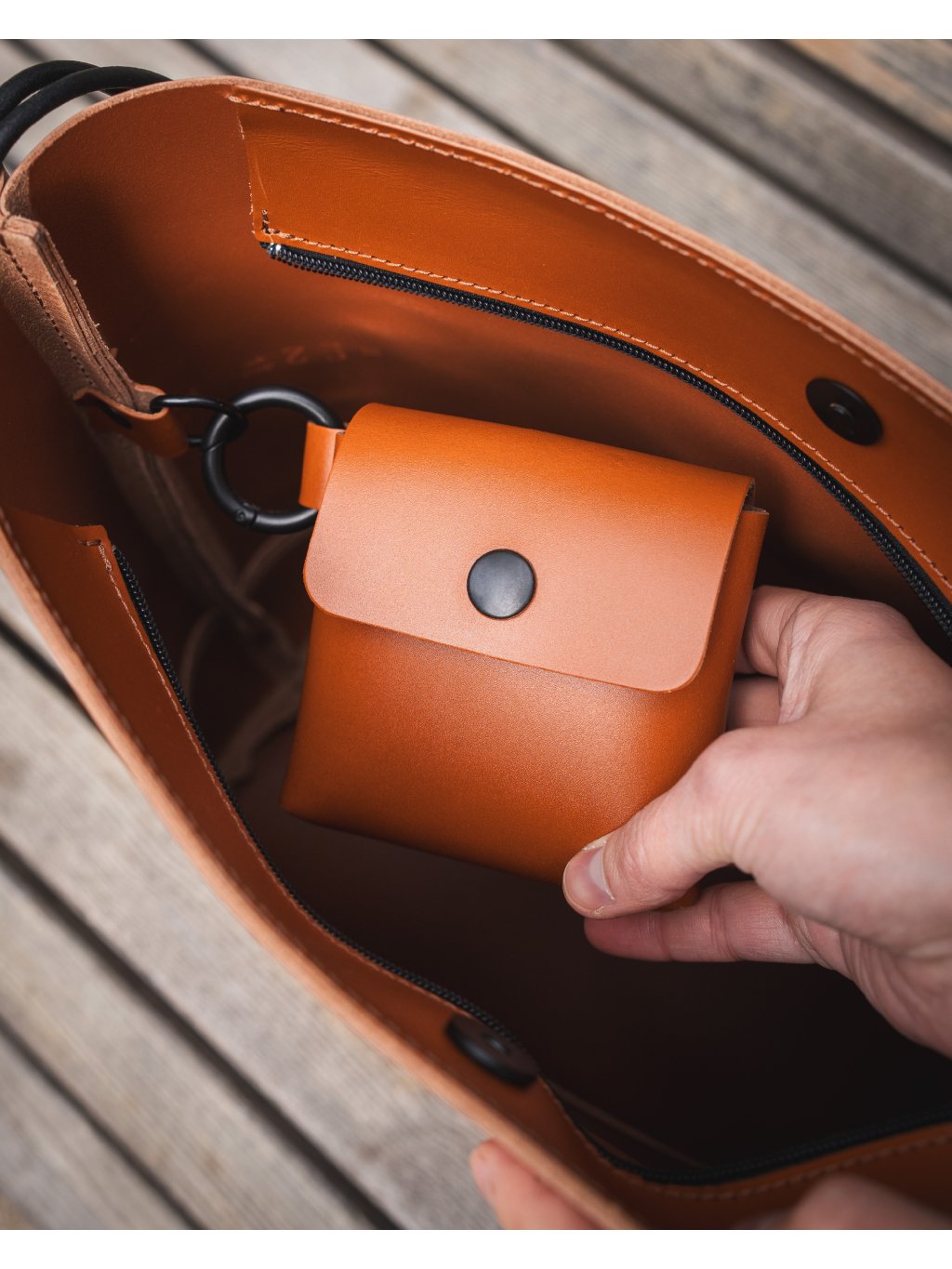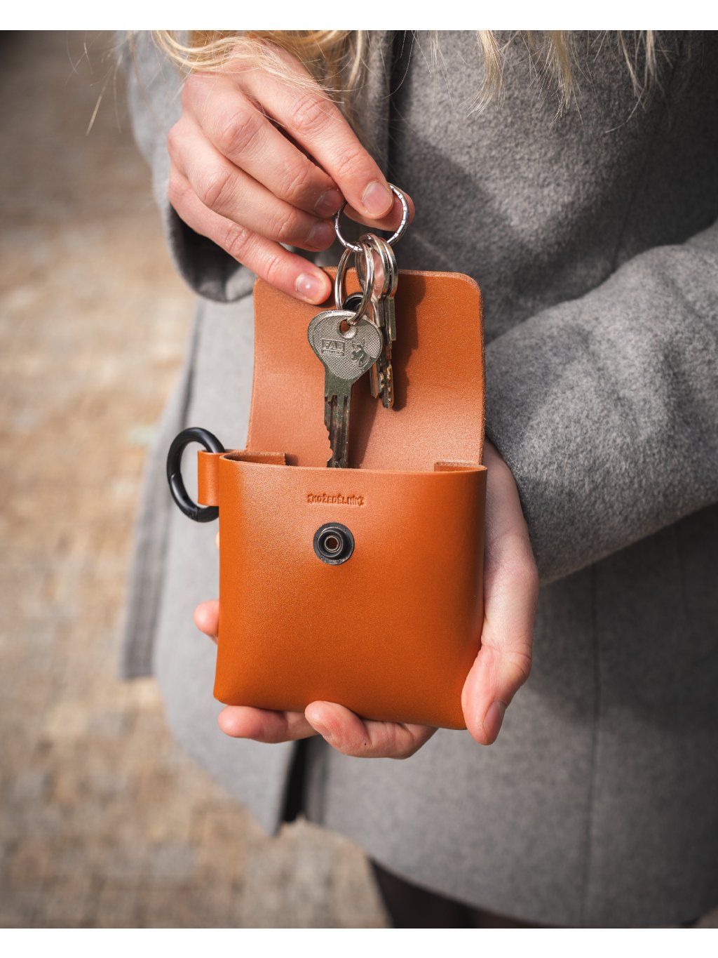Tato kapsička z 2 mm silné italské třísločiněné usně je ideální na drobnosti nebo klíče, které chcete mít bezpečně uložené a vždy po ruce. Díky zabarvenému hladkému rubu nepotřebuje podšívku a je krásně odolná.